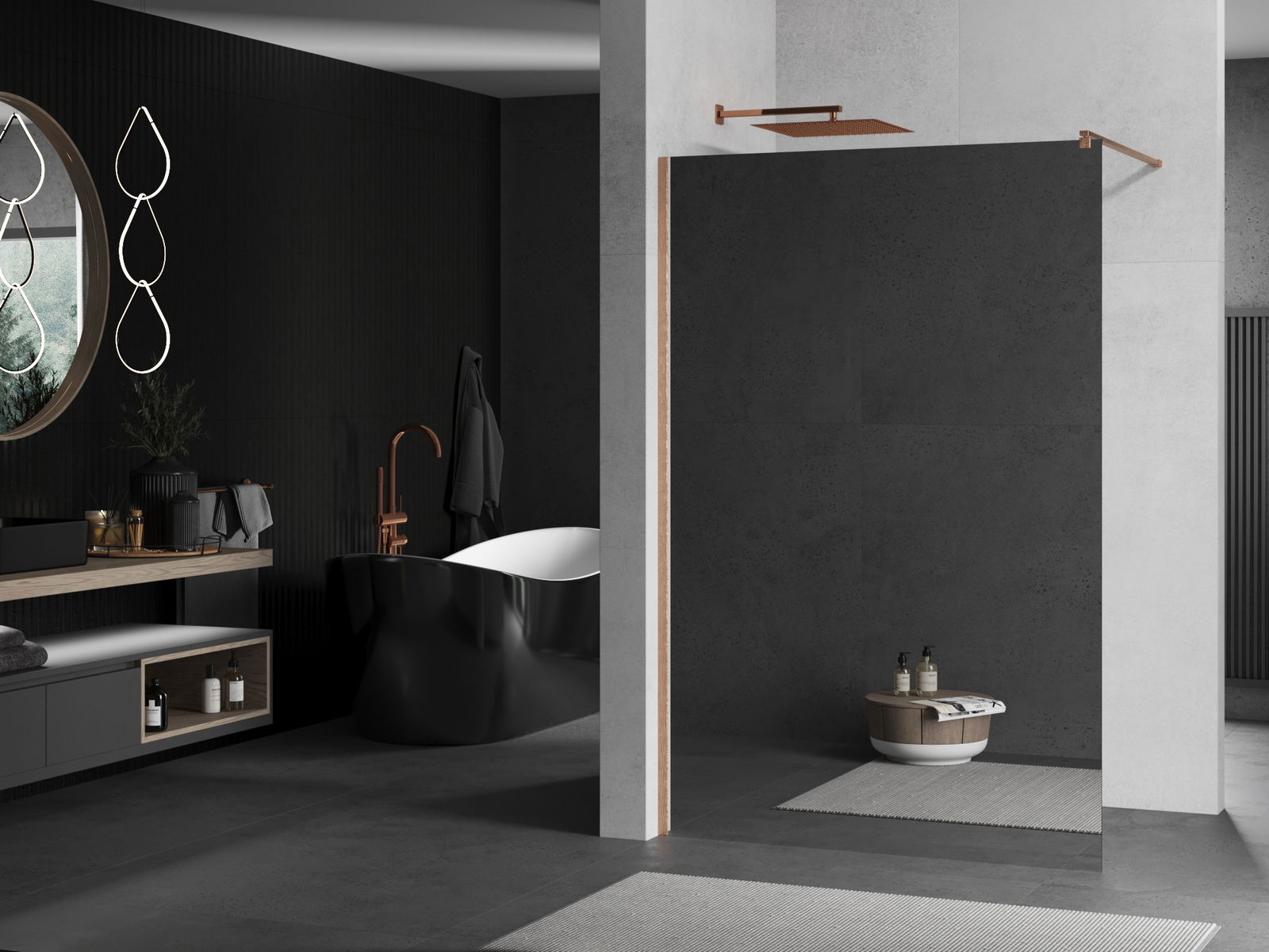 Mexen Kioto sprchová stena Walk-in 110 x 200 cm, zrkadlo 8 mm, brúsená meď - 800-110-101-65-50