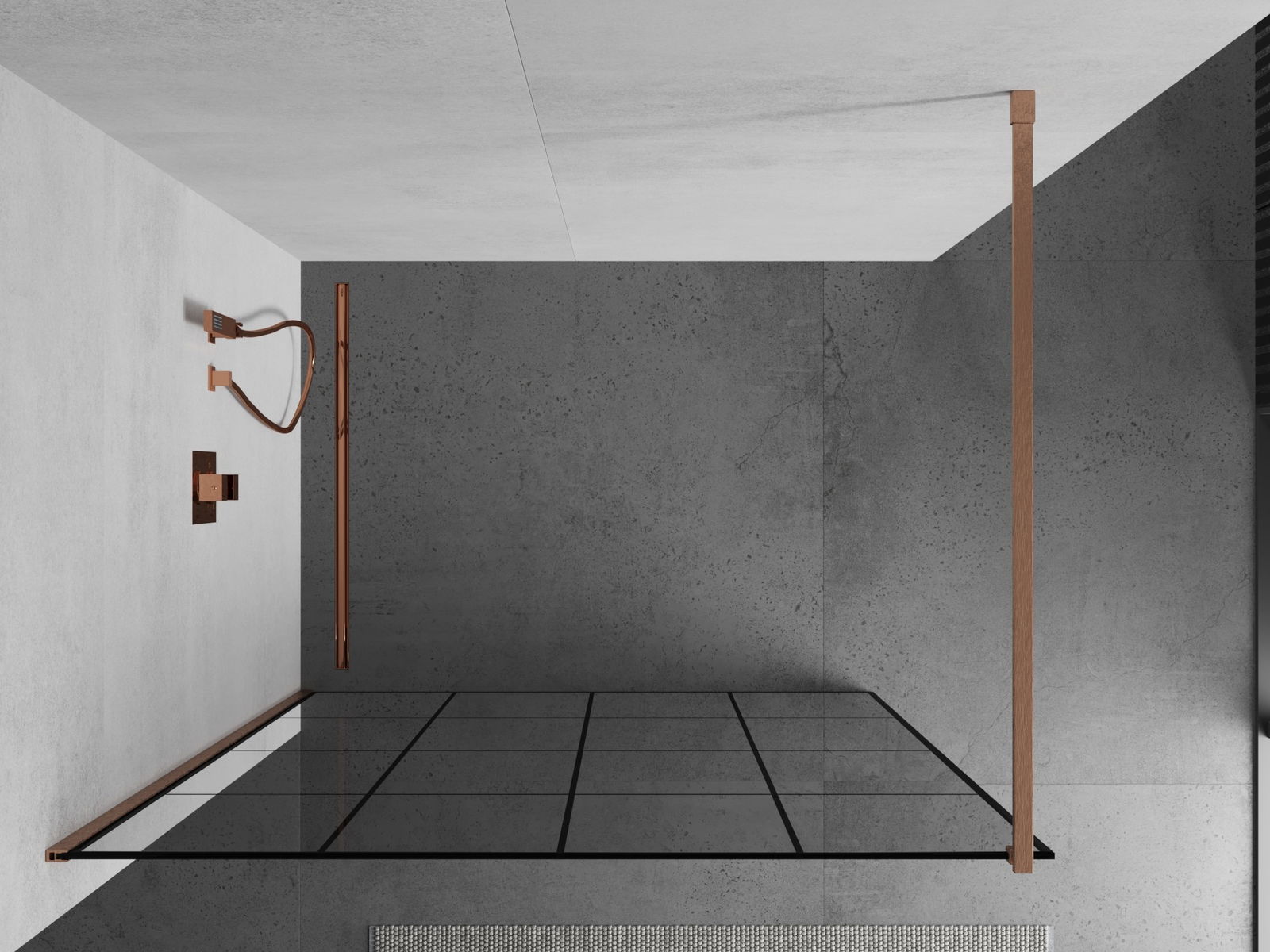 Mexen Kioto sprchová stena Walk-in 140 x 200 cm, čierna mriežka 8 mm, brúsená meď - 800-140-101-65-77