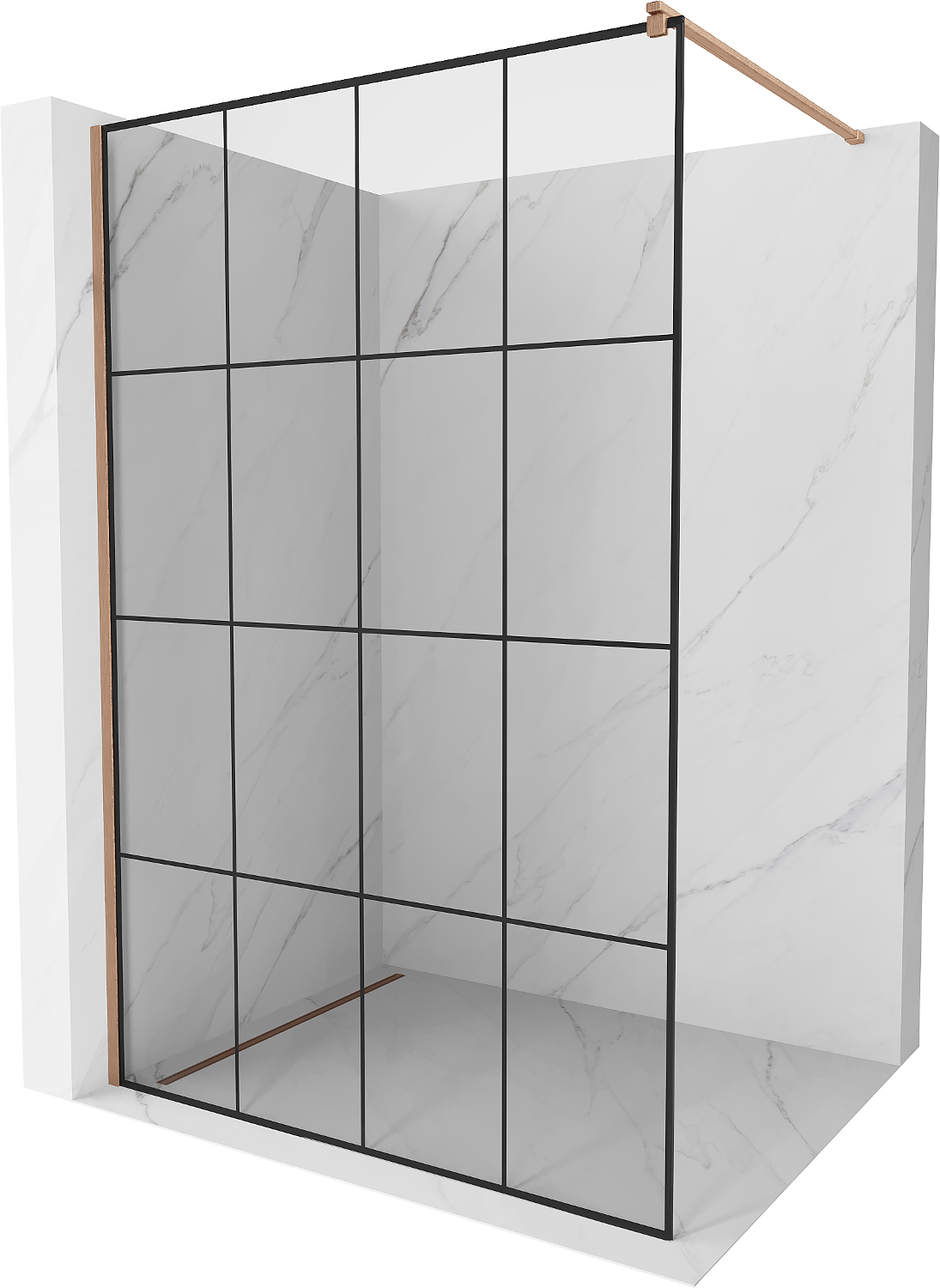 Mexen Kioto sprchová stena Walk-in 150 x 200 cm, čierna mriežka 8 mm, brúsená meď - 800-150-101-65-77