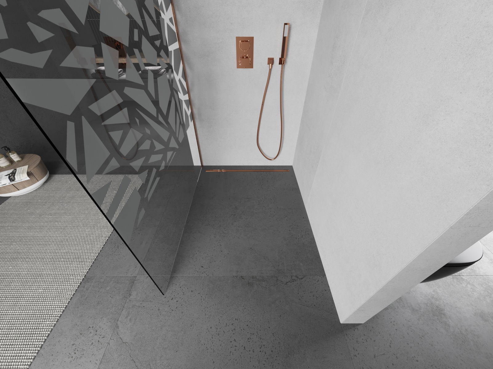 Mexen Kioto sprchová stena Walk-in 90 x 200 cm, biely vzor 8 mm, brúsená meď - 800-090-101-65-85