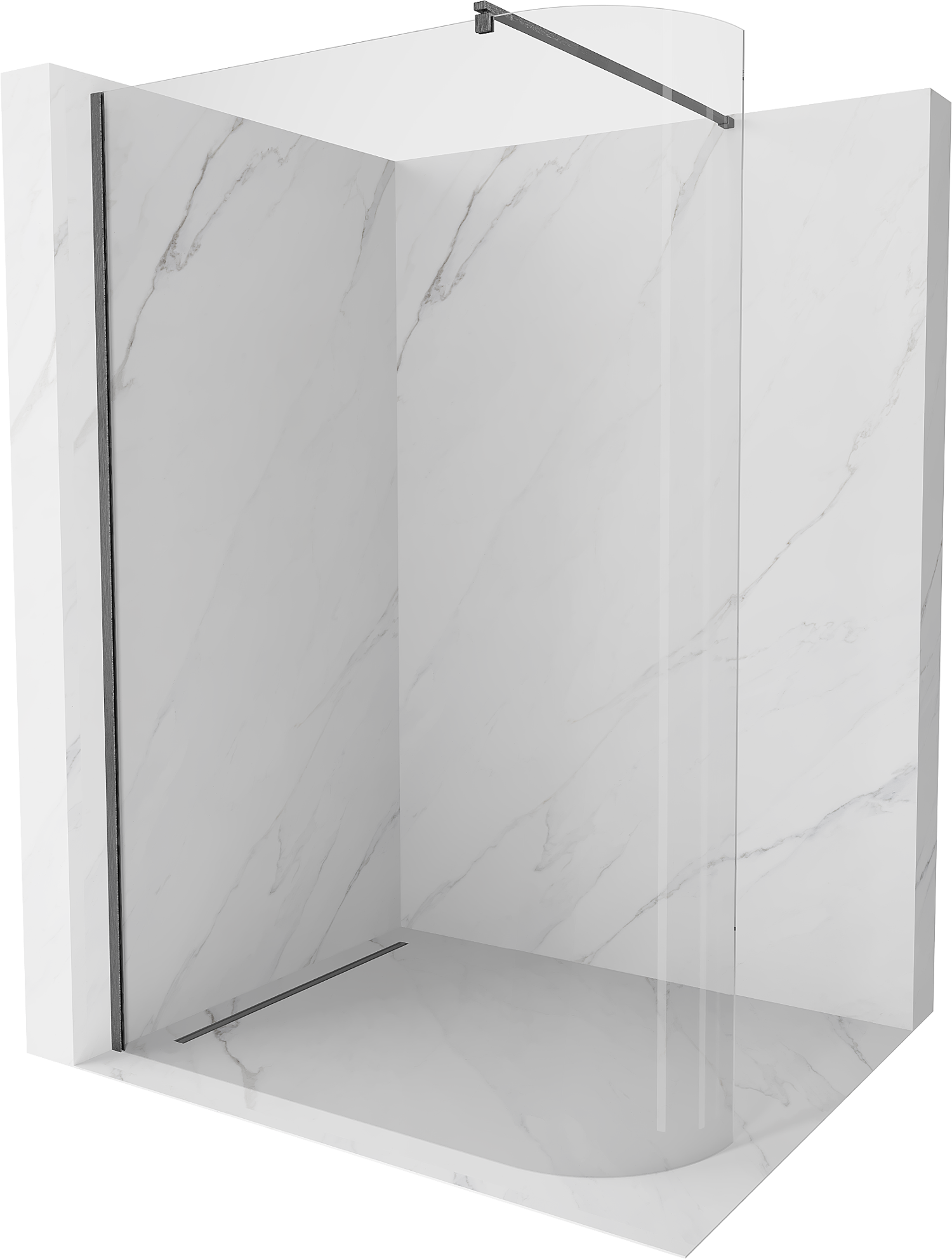 Mexen Kioto-R zaoblená sprchová stena Walk-in 120 x 200 cm, priehľadná 8 mm, kartáčovaná gun gray - 800-120-101-66-06