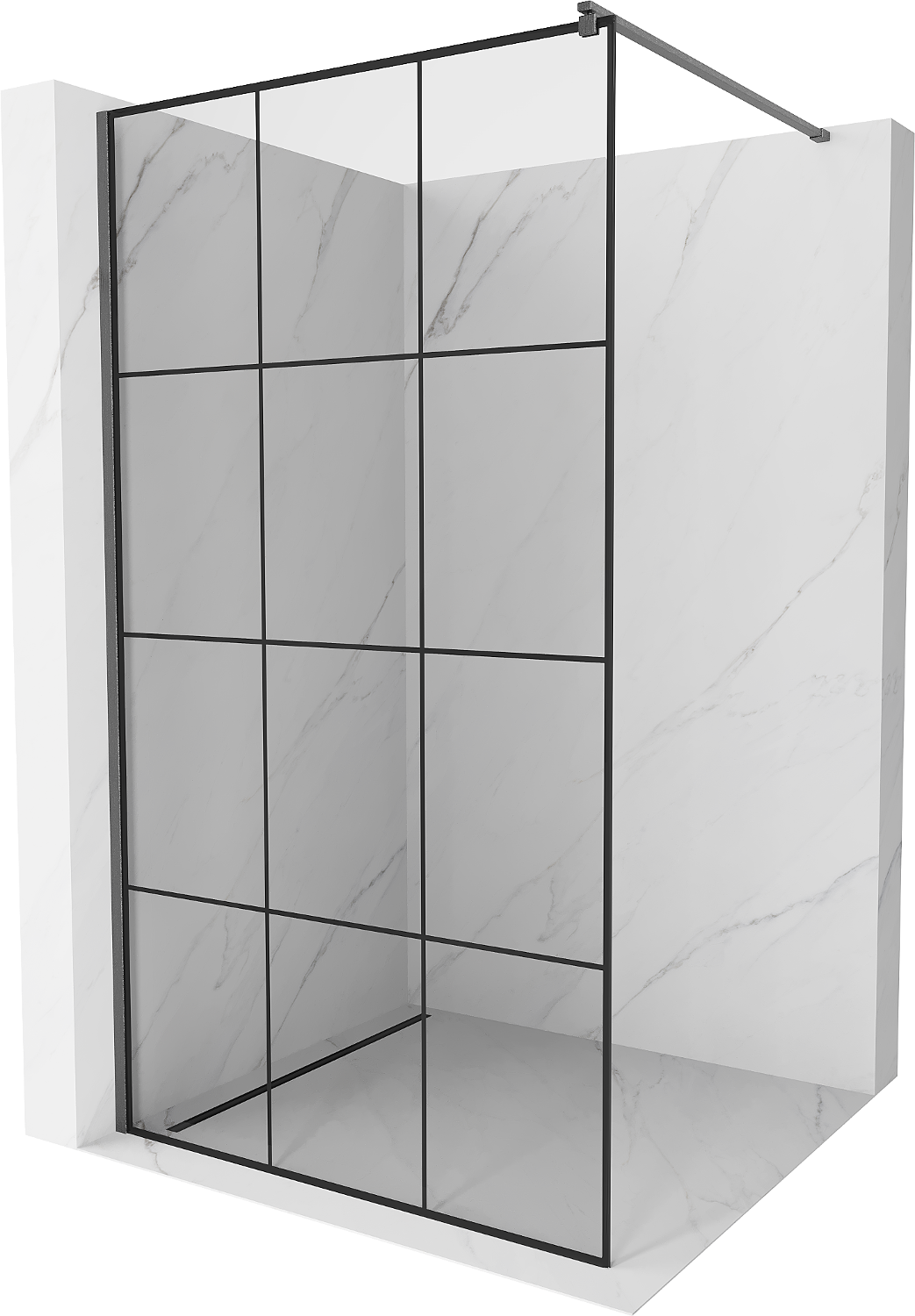 Mexen Kioto sprchová stena Walk-in 120 x 200 cm, čierna mriežka 8 mm, brúsená sivá - 800-120-101-66-77