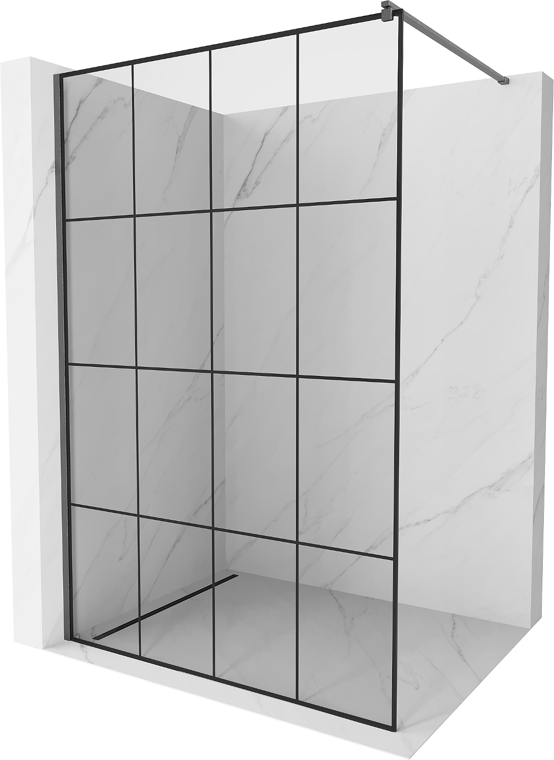 Mexen Kioto sprchová stena Walk-in 150 x 200 cm, čierna mriežka 8 mm, gun gray brúsený - 800-150-101-66-77