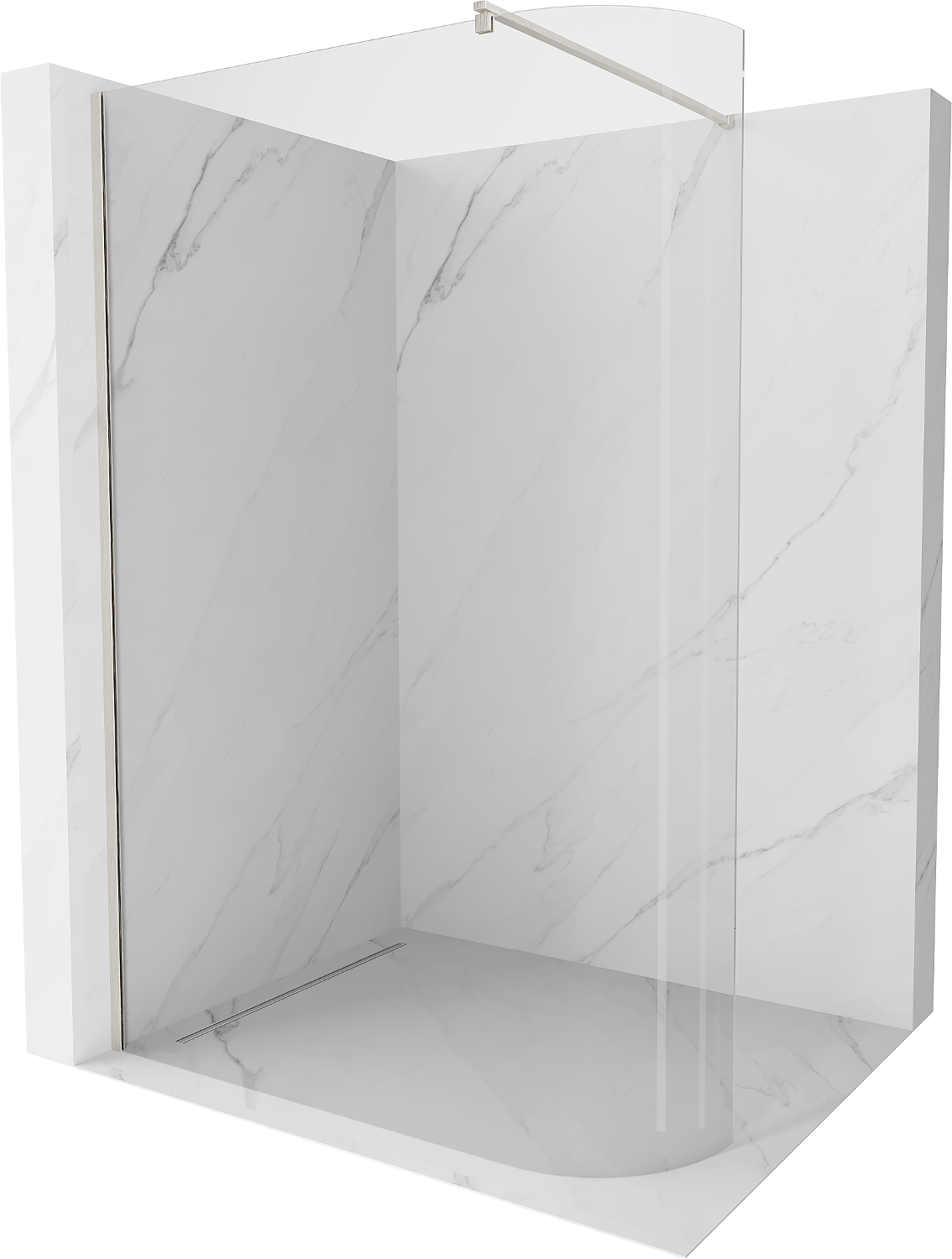 Mexen Kioto-R zaoblená sprchová stena Walk-in 130 x 200 cm, transparentná 8 mm, brúsený nikel - 800-130-101-97-06