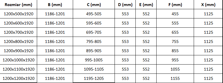 Rozmer: 120x110 cm (dvere 120 cm, stena 110 cm)