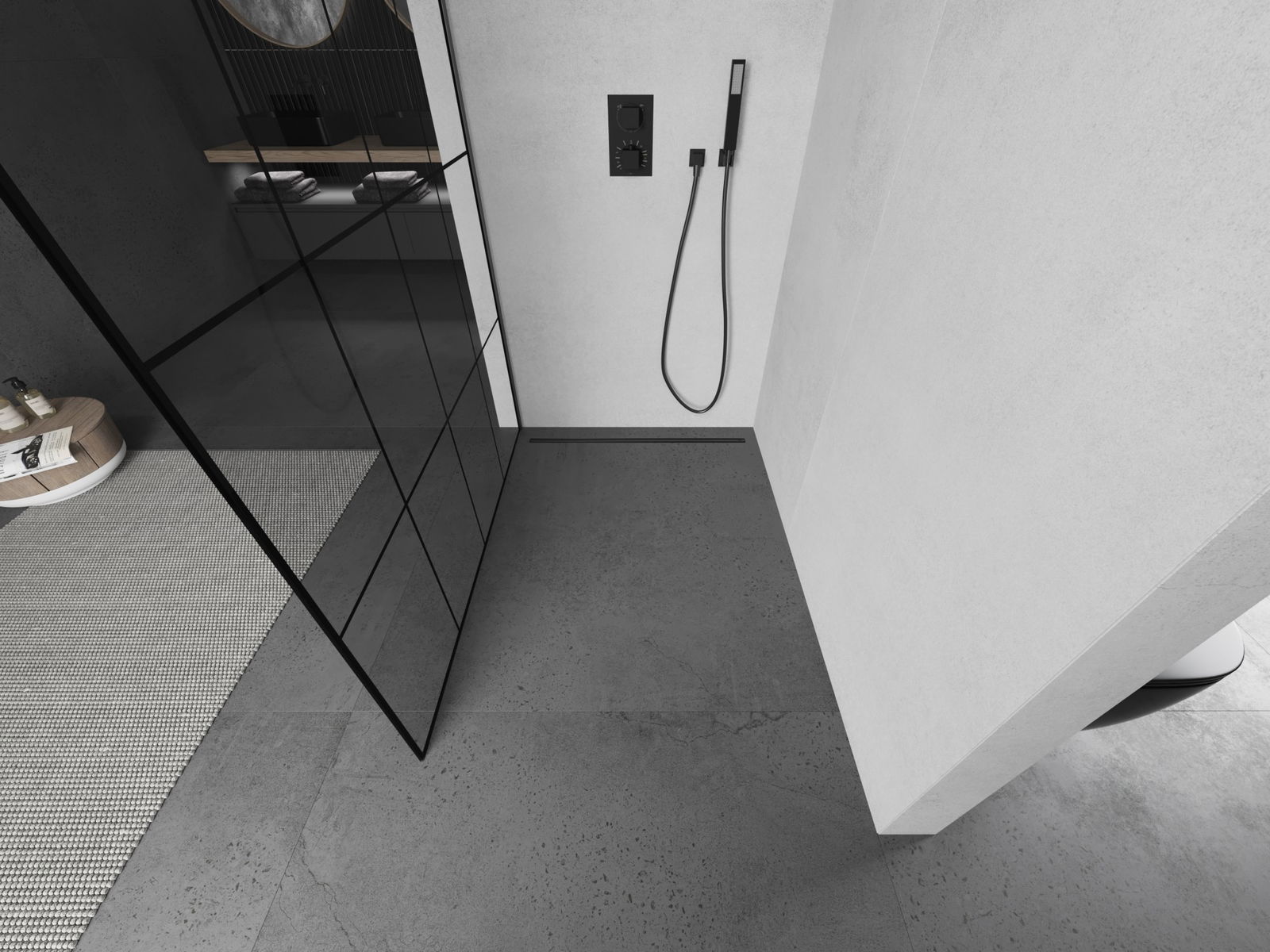 Mexen Kioto sprchová stena Walk-in 160 x 200 cm, čierna mriežka 8 mm, gun metal - 800-160-101-95-77