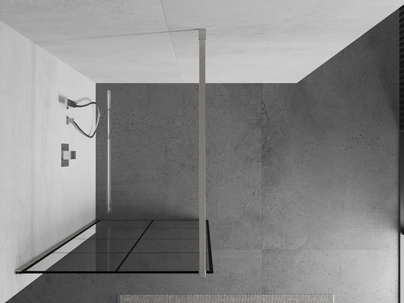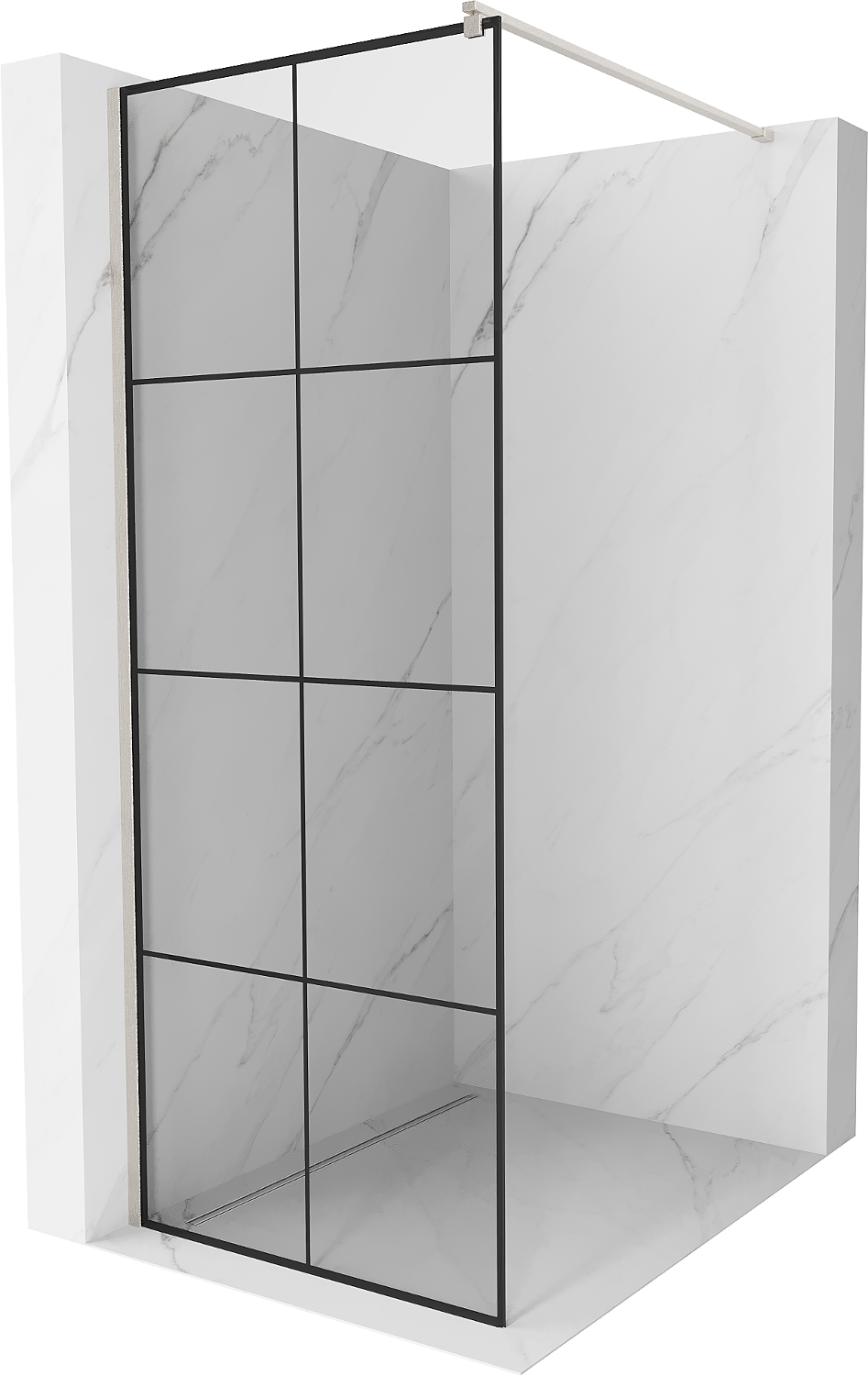 Mexen Kioto sprchová stena Walk-in 80 x 200 cm, čierna mriežka 8 mm, brúsený nikel - 800-080-101-97-77