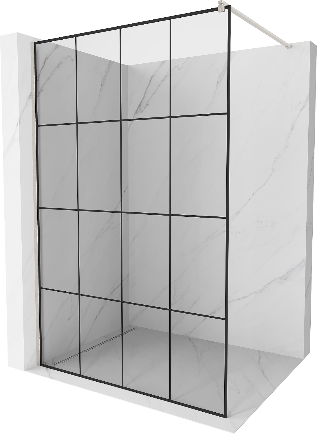 Mexen Kioto sprchová stena Walk-in 150 x 200 cm, čierna mriežka 8 mm, brúsený nikel - 800-150-101-97-77