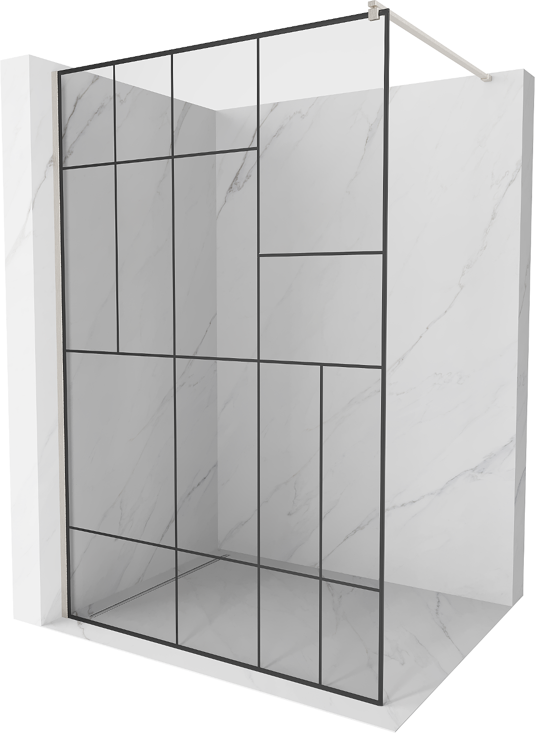 Mexen Kioto sprchová stena Walk-in 90 x 200 cm, čierny vzor 8 mm, brúsený nikel - 800-090-101-97-78
