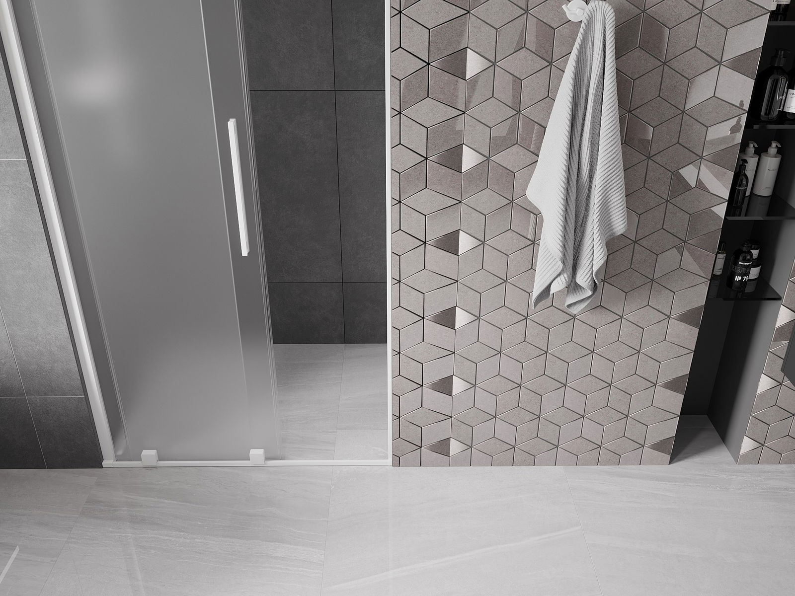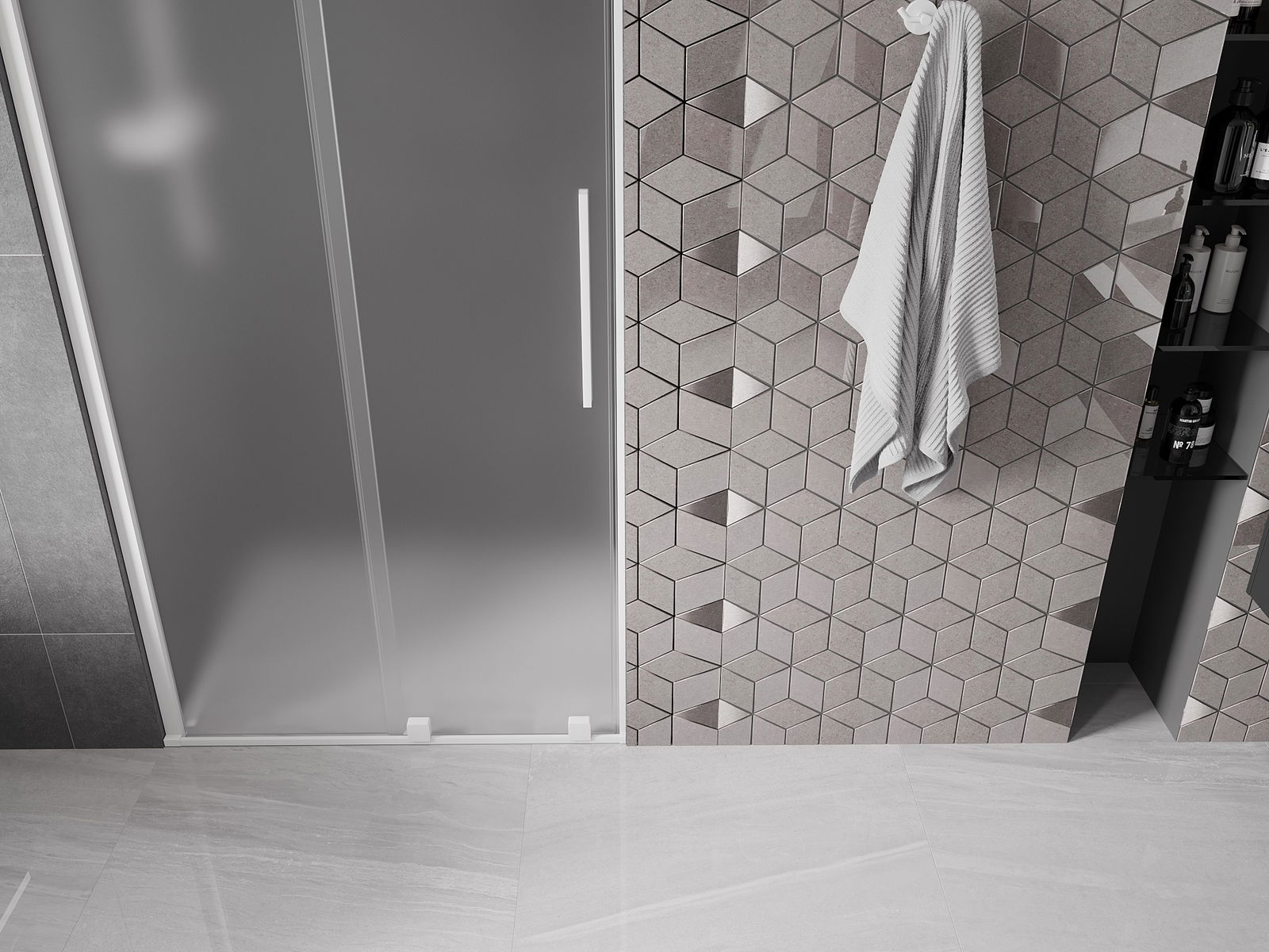 Praktický a pohodlný držiak je vyrobený z nehrdzavejúcej ocele. Módny tvar v kombinácii s povrchovou úpravou prispôsobenou farbe profilov dodáva celej konštrukcii moderný a štýlový vzhľad, podčiarkujúc estetiku každej kúpeľne.