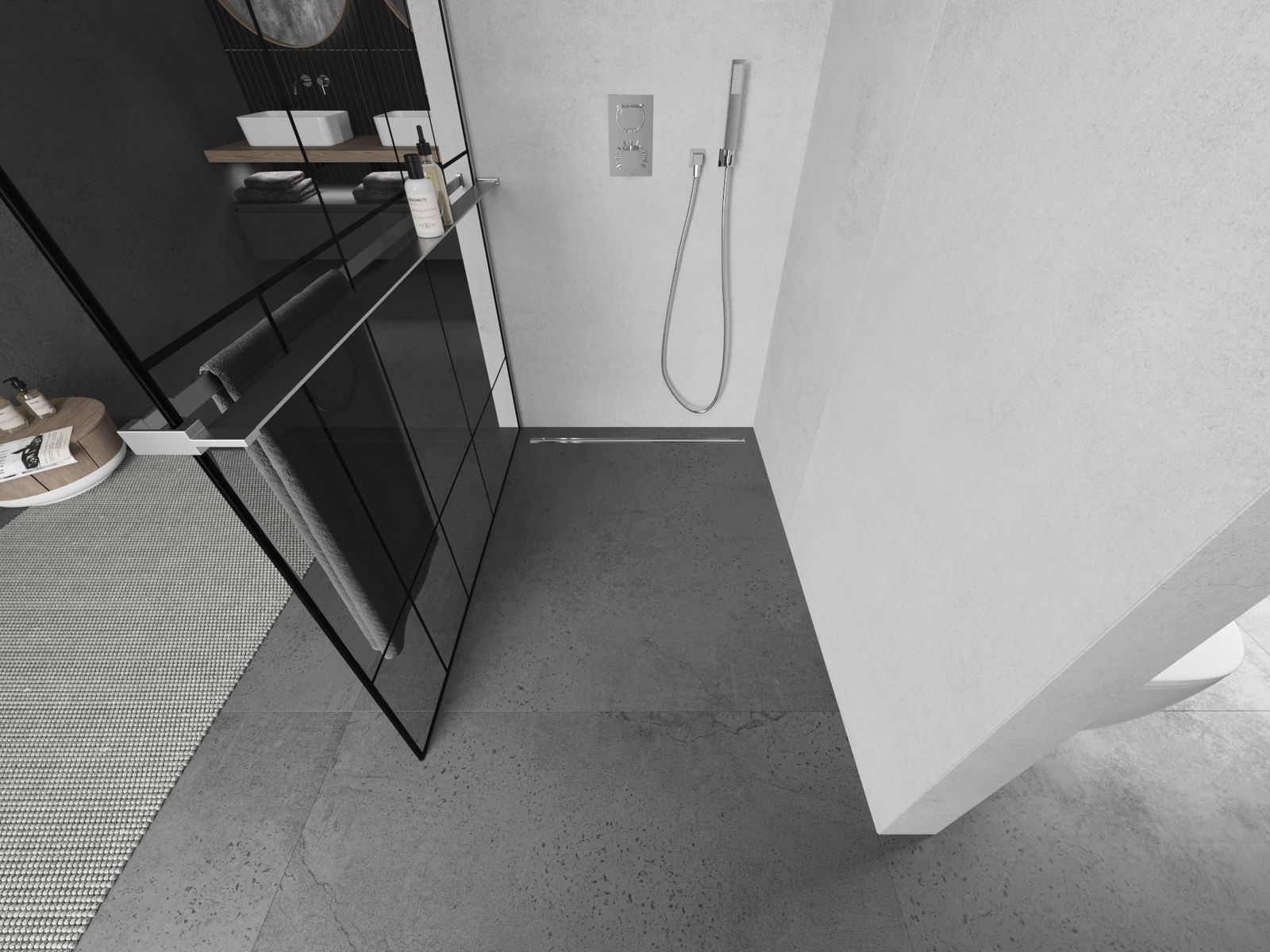 Mexen Kioto+ L sprchová zástena s poličkou Walk-in 90 x 200 cm, čierny vzor, chróm - 800-090-123-01-78