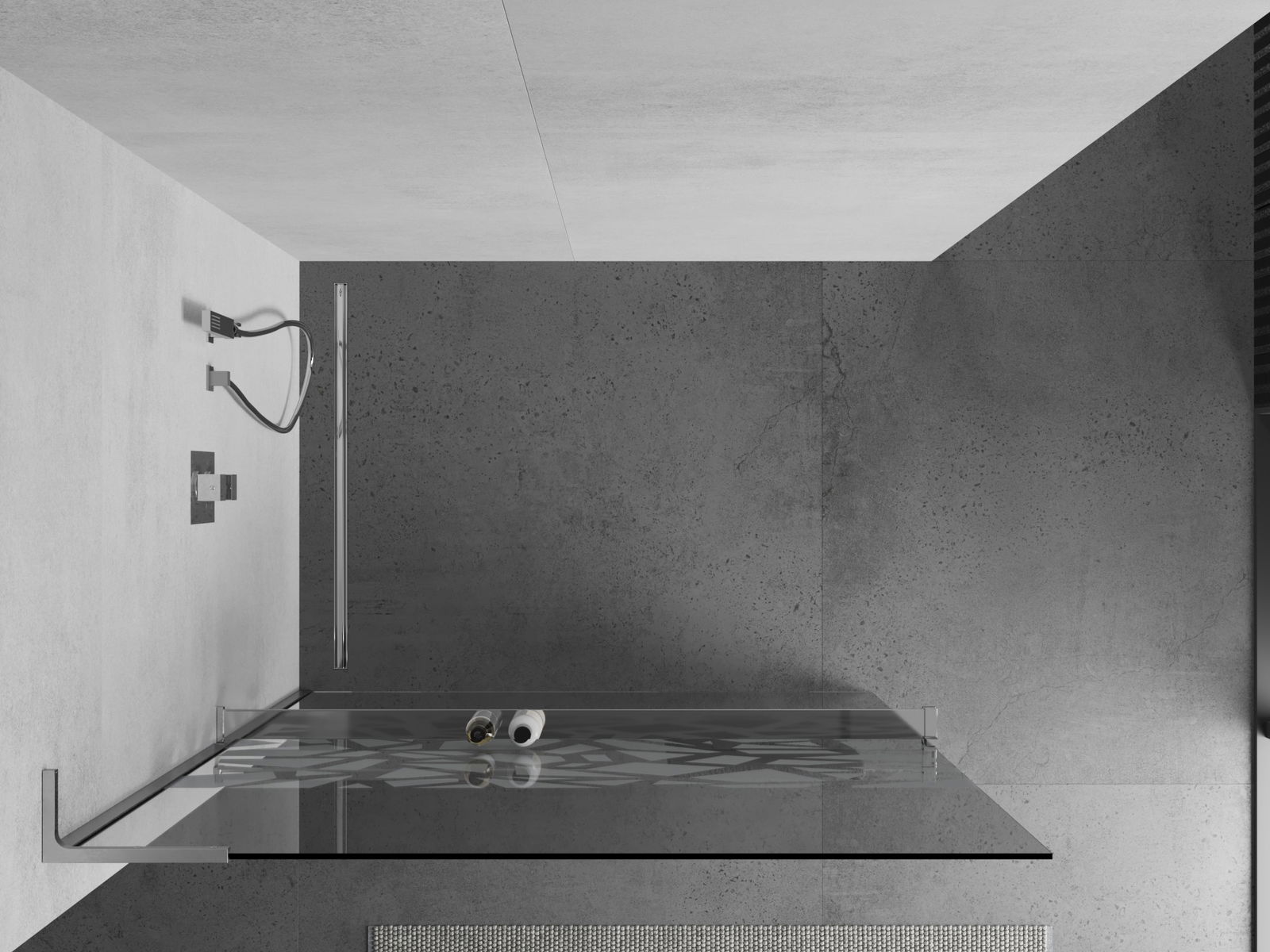 Mexen Kioto+ L sprchová stena s policou Walk-in 70 x 200 cm, biely vzor, chróm - 800-070-123-01-85