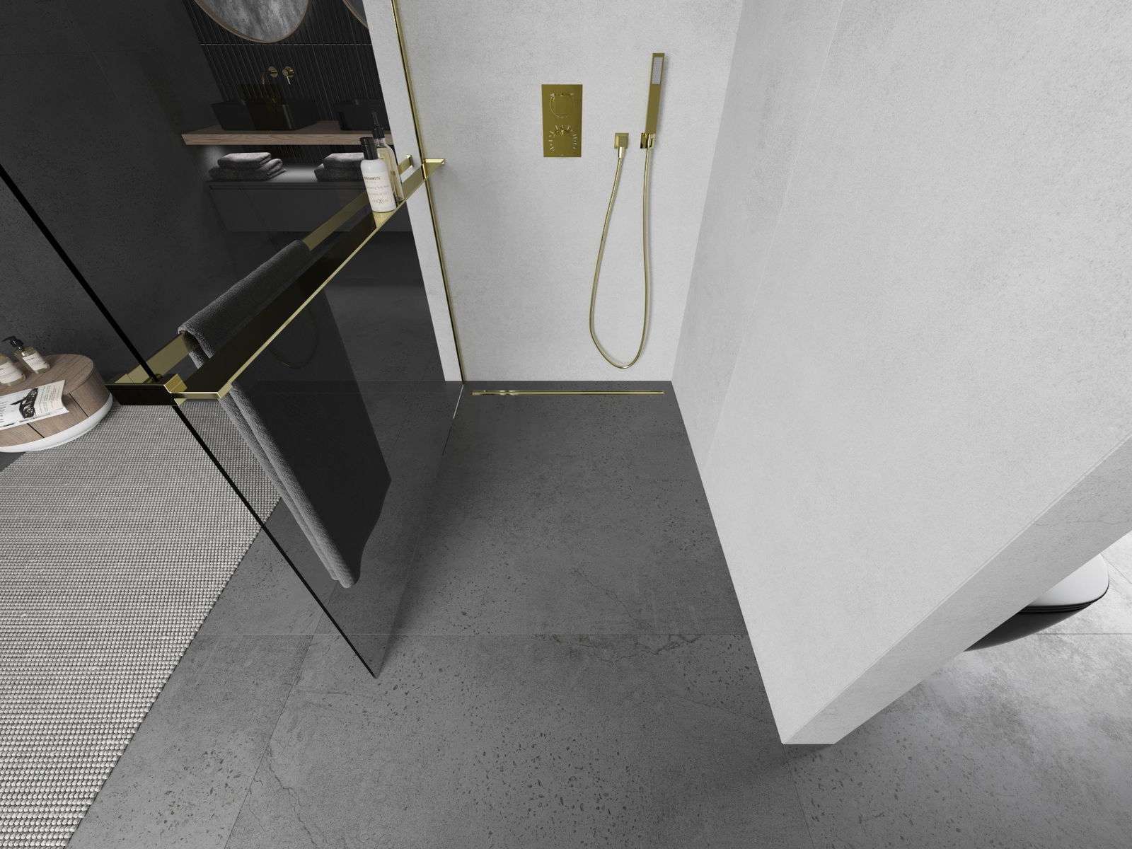 Mexen Kioto+ L sprchová stena s policou Walk-in 75 x 200 cm, transparentná, zlatá - 800-075-123-50-00