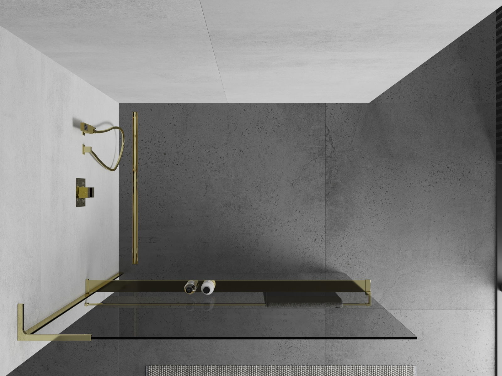 Mexen Kioto+ L sprchová stena s policou Walk-in 100 x 200 cm, transparentná, zlatá - 800-100-123-50-00