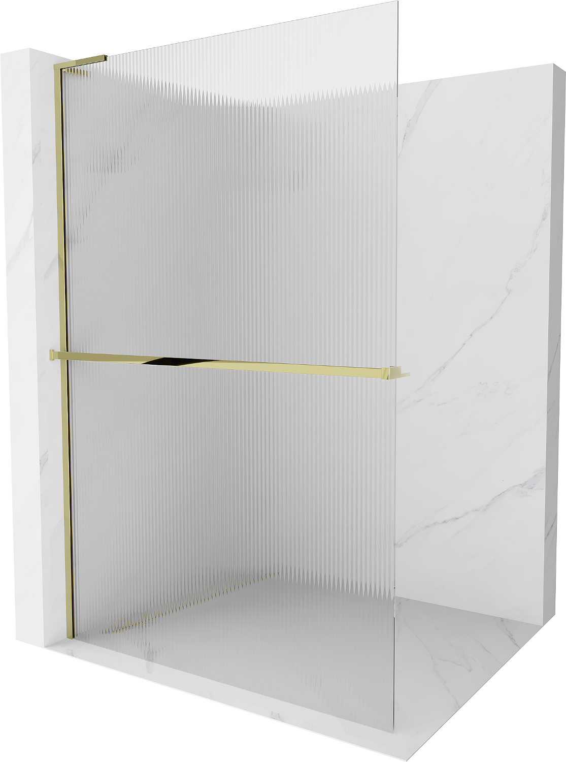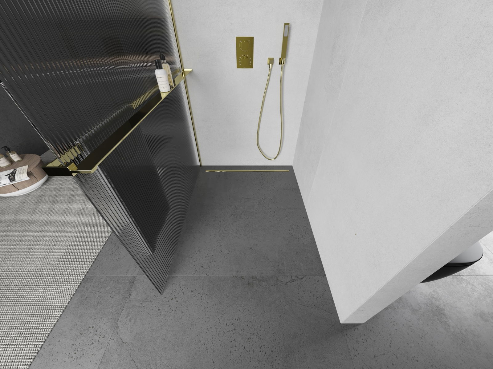 Mexen Kioto+ L sprchová stena s policou Walk-in 70 x 200 cm, prúžky, zlatá - 800-070-123-50-09