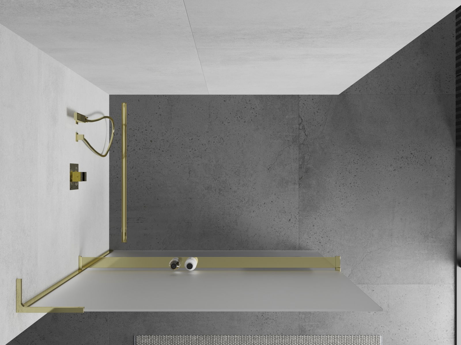 Mexen Kioto+ L sprchová stena s policou Walk-in 70 x 200 cm, mráz, zlato - 800-070-123-50-30