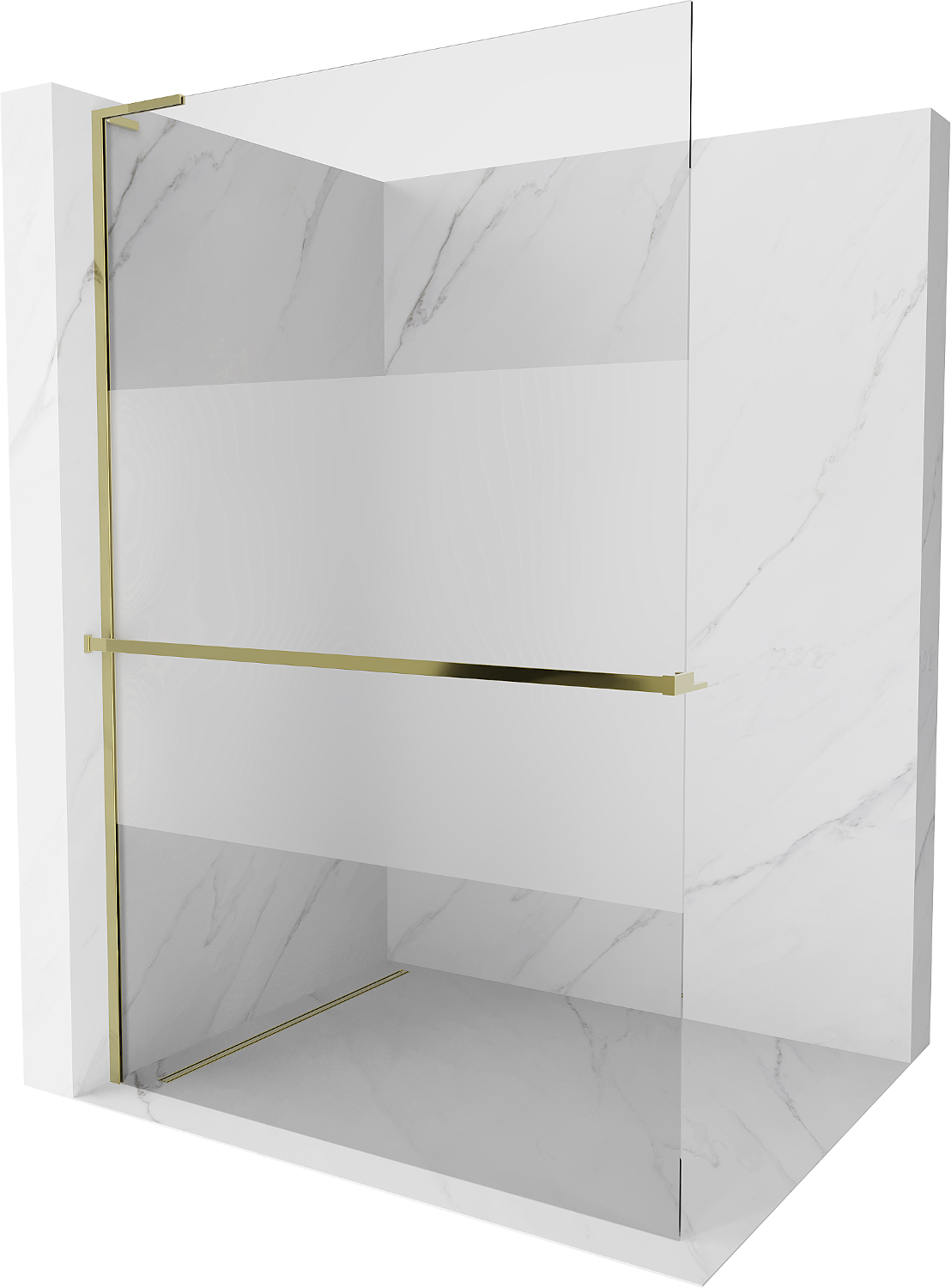 Mexen Kioto+ L sprchová stena s poličkou Walk-in 70 x 200 cm, transparentná/matná, zlatá - 800-070-123-50-35