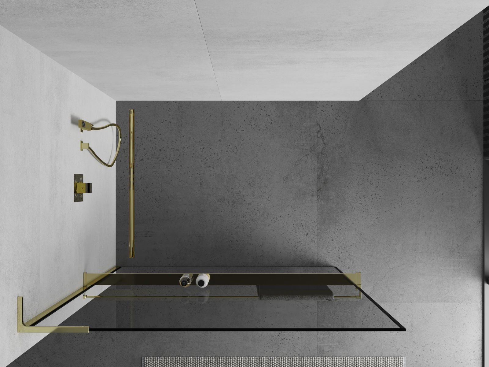 Mexen Kioto+ L sprchová stena s poličkou Walk-in 120 x 200 cm, čierny rám, zlatá - 800-120-123-50-70