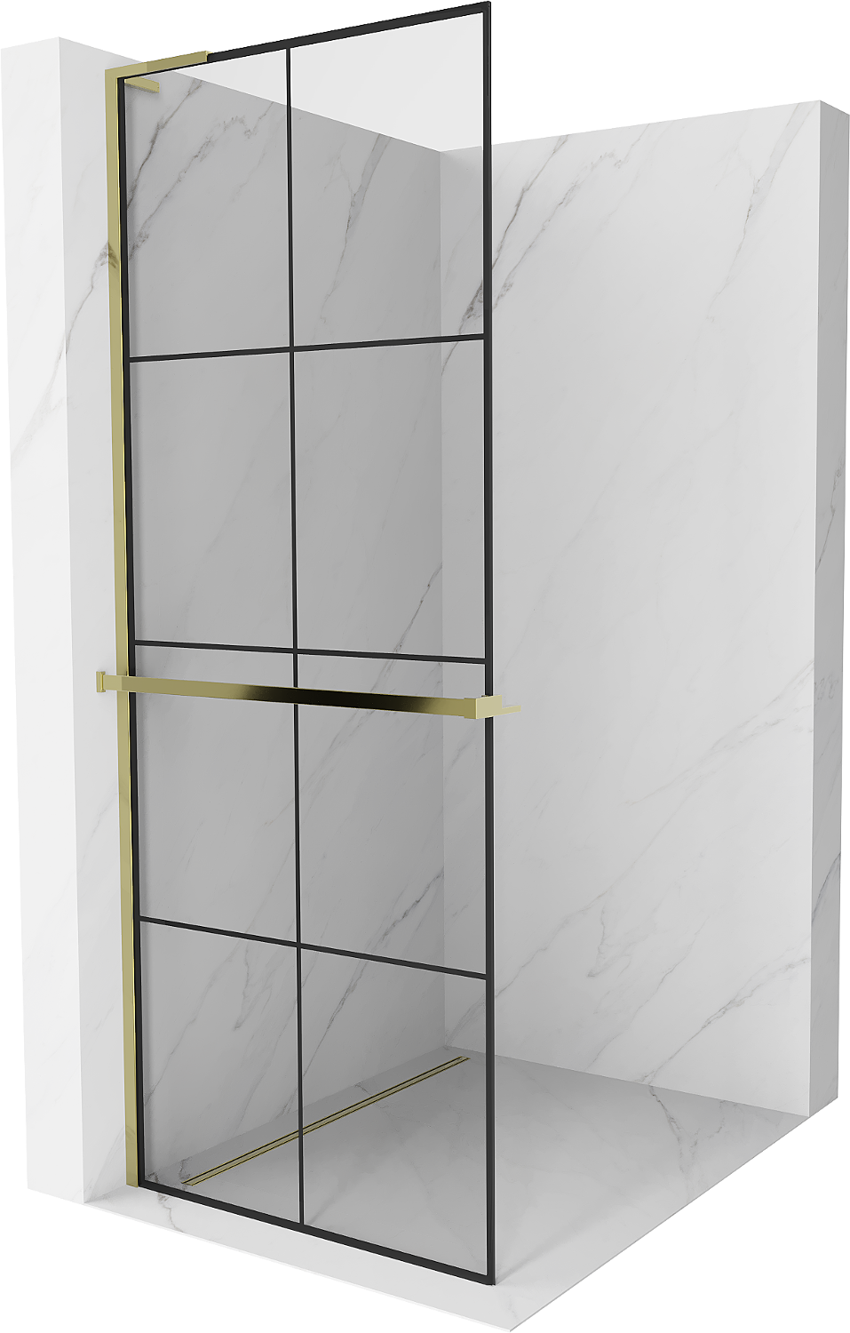 Mexen Kioto+ L sprchová stena s poličkou Walk-in 90 x 200 cm, čierna mriežka, zlatá - 800-090-123-50-77