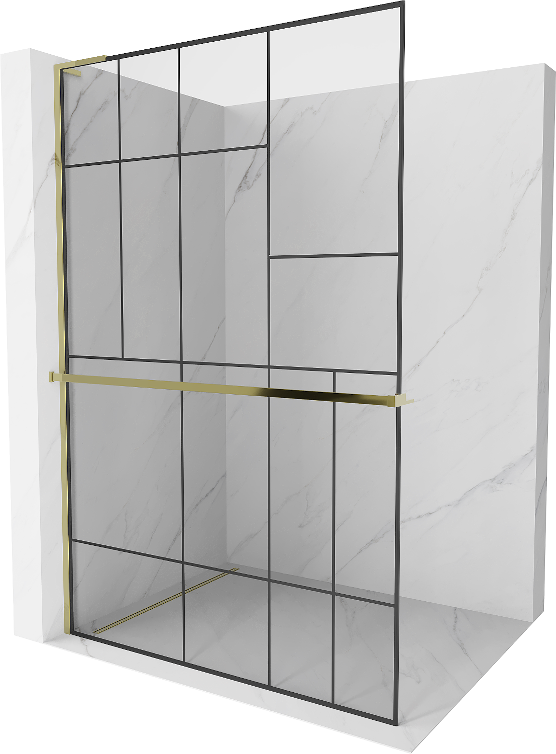 Mexen Kioto+ L sprchová stena s poličkou Walk-in 90 x 200 cm, čierny vzor, zlatá - 800-090-123-50-78