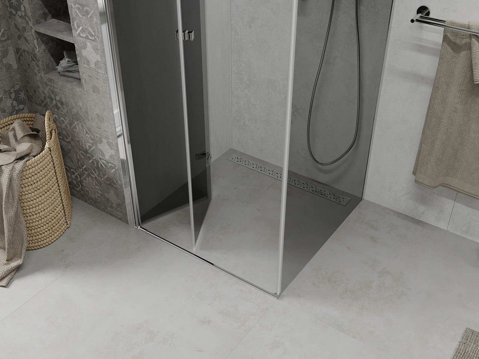 Schopnosť zložiť dvere vonku aj vo vnútri vám umožňuje získať viac priestoru, keď nepoužívate sprchu. Je to ideálne riešenie pre menšie kúpeľne, maximálne pomocou dostupného povrchu.