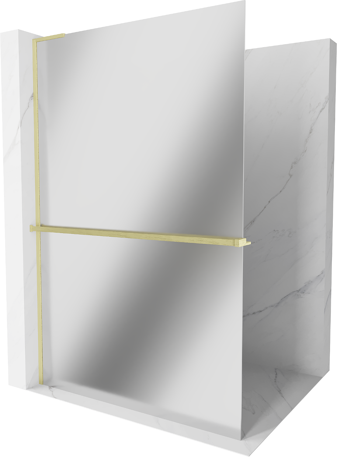Mexen Kioto+ L sprchová stena s poličkou Walk-in 90 x 200 cm, zrkadlo, zlatá kartáčovaná - 800-090-123-55-50