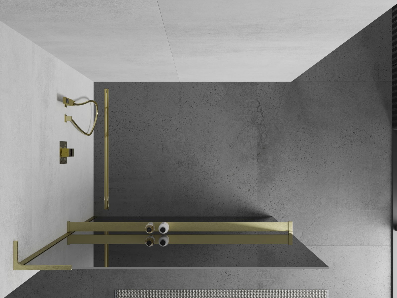 Mexen Kioto+ L sprchová stena s policou Walk-in 120 x 200 cm, zrkadlo, zlatá kartáčovaná - 800-120-123-55-50