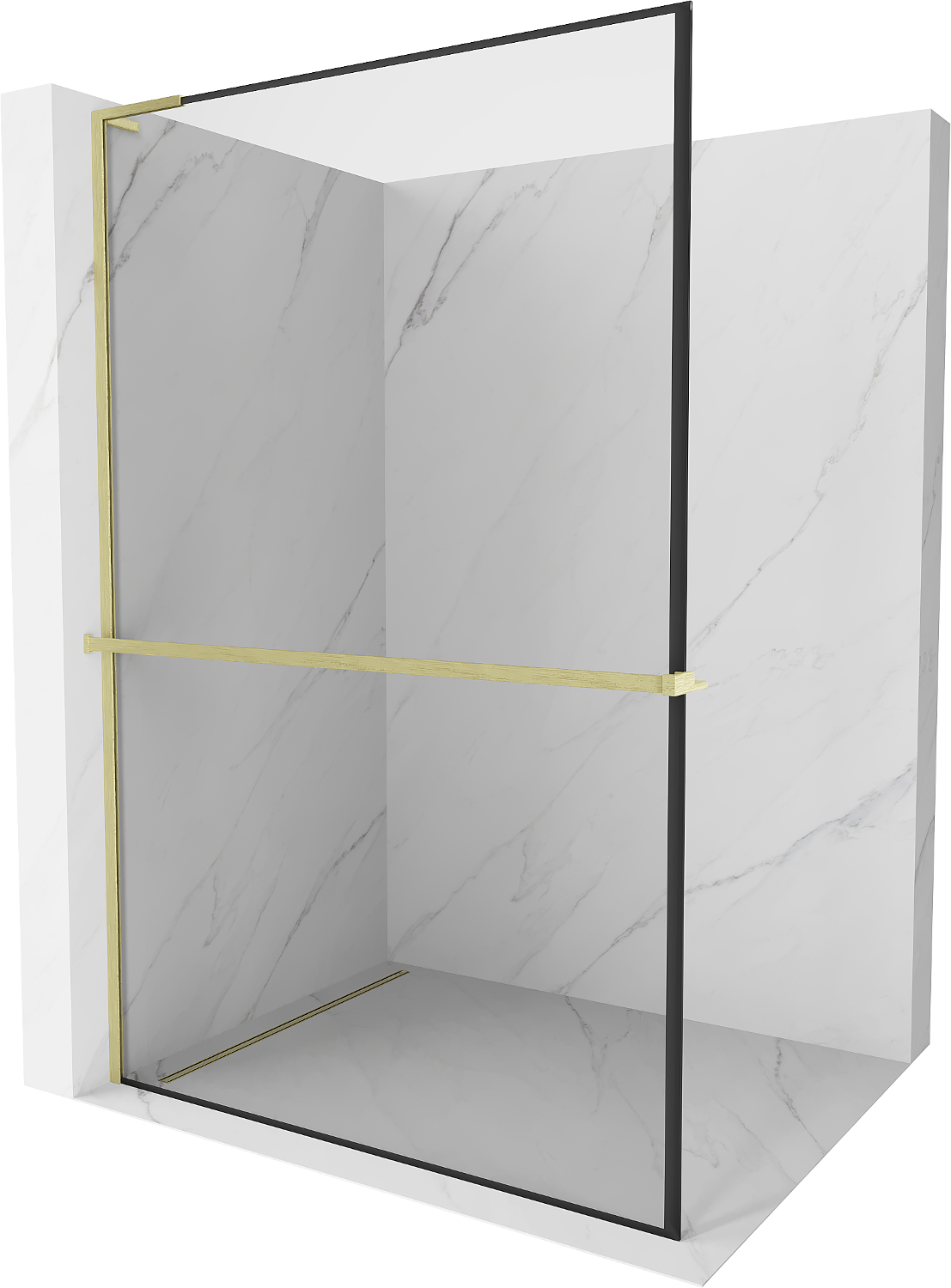 Mexen Kioto+ L sprchová stena s policou Walk-in 70 x 200 cm, čierny rám, zlatá kefovaná - 800-070-123-55-70