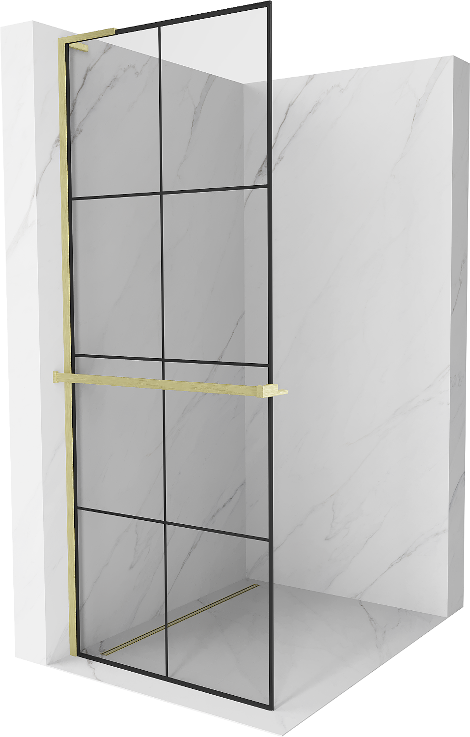 Mexen Kioto+ L sprchová stena s poličkou Walk-in 90 x 200 cm, čierna mriežka, zlatá brúsená - 800-090-123-55-77