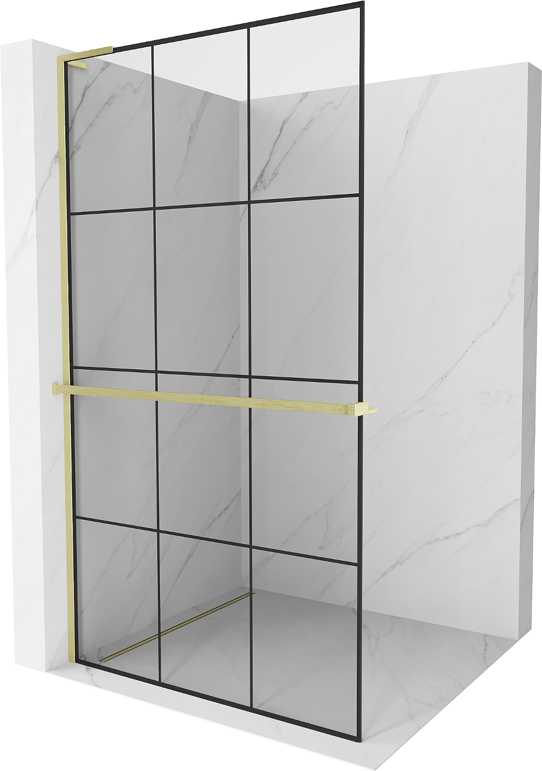 Mexen Kioto+ L sprchová stena s poličkou Walk-in 100 x 200 cm, čierna mriežka, zlatá kartáčovaná - 800-100-123-55-77