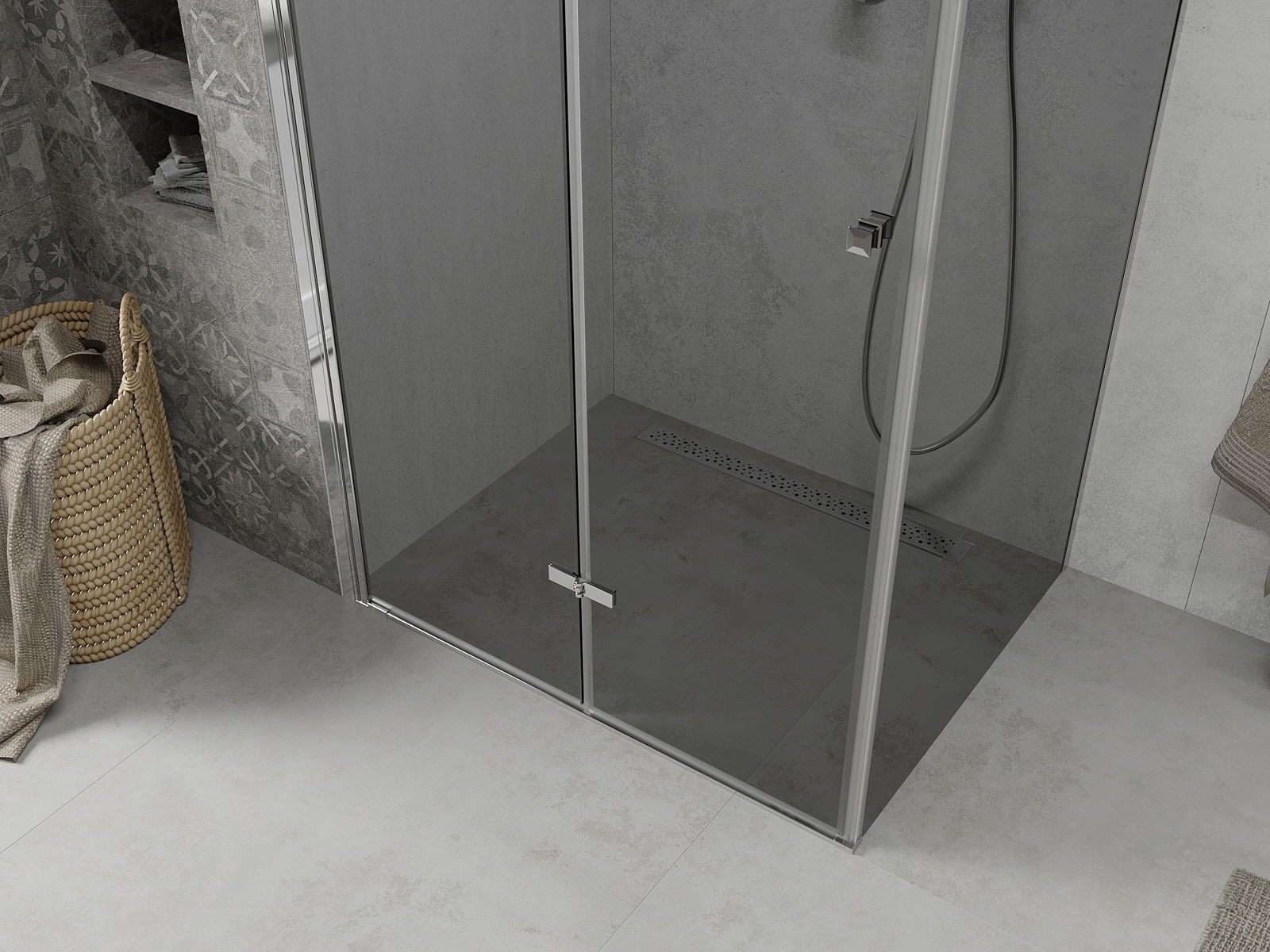 Schopnosť zložiť dvere vonku aj vo vnútri vám umožňuje získať viac priestoru, keď nepoužívate sprchu. Je to ideálne riešenie pre menšie kúpeľne, maximálne pomocou dostupného povrchu.