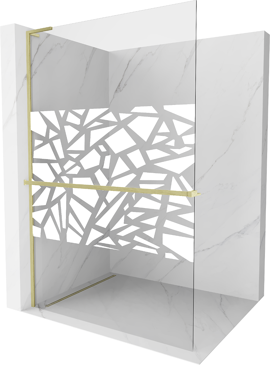 Mexen Kioto+ L sprchová stena s policou Walk-in 90 x 200 cm, biely vzor, zlatá kartáčovaná - 800-090-123-55-85