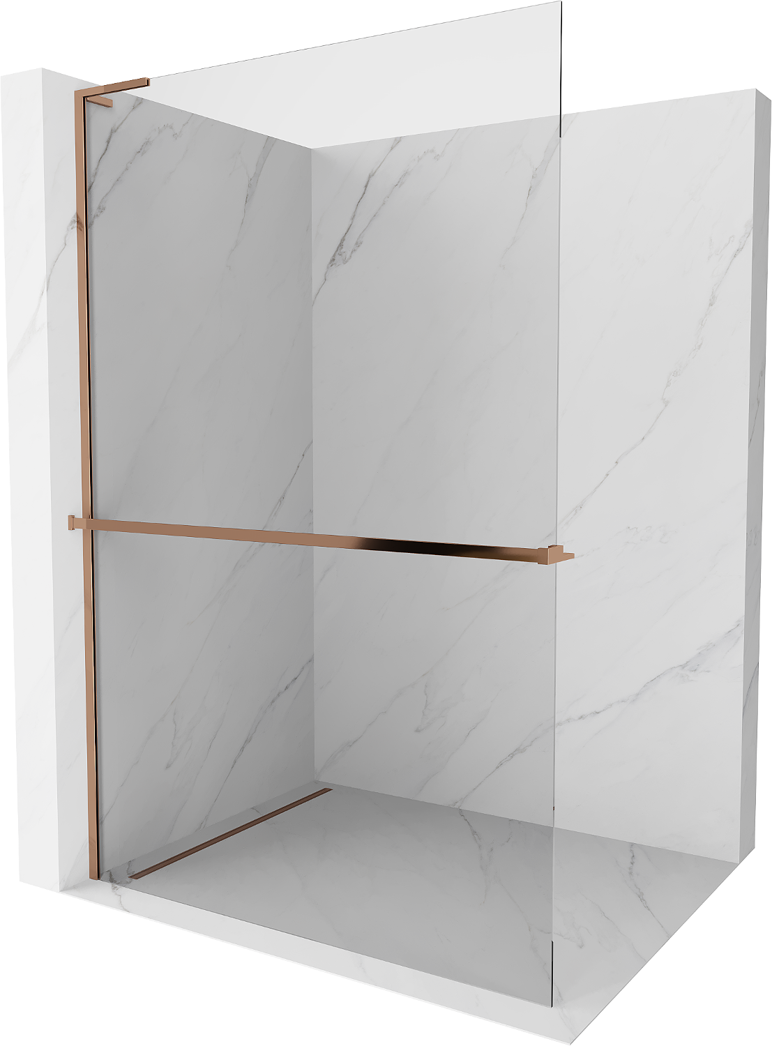 Mexen Kioto+ L sprchová stena s policou Walk-in 110 x 200 cm, transparentná, ružové zlato - 800-110-123-60-00