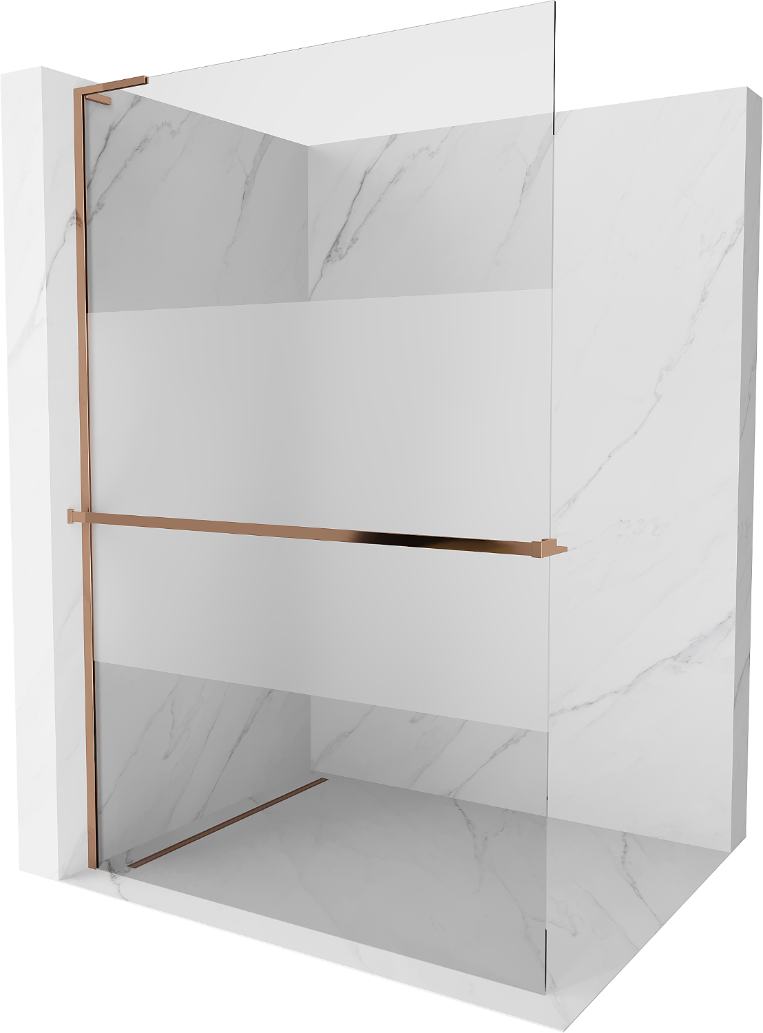 Mexen Kioto+ L sprchová stena s policou Walk-in 120 x 200 cm, priehľadná/matná, ružové zlato - 800-120-123-60-35