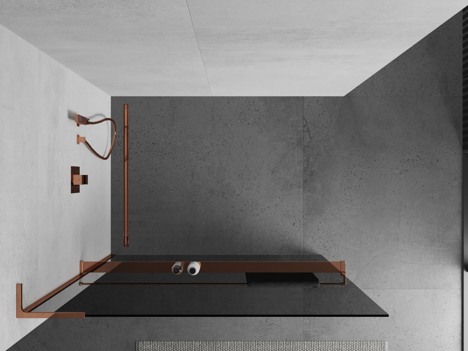Mexen Kioto+ L sprchová stena s poličkou Walk-in 90 x 200 cm, grafit, ružové zlato - 800-090-123-60-40