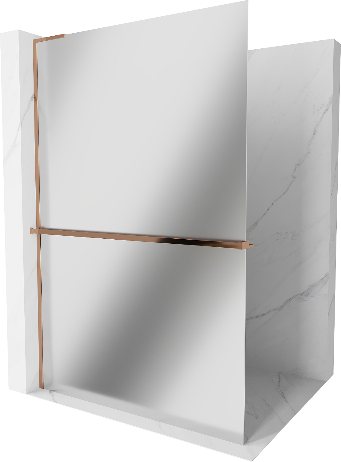 Mexen Kioto+ L sprchová stena s policou Walk-in 90 x 200 cm, zrkadlo, ružové zlato - 800-090-123-60-50