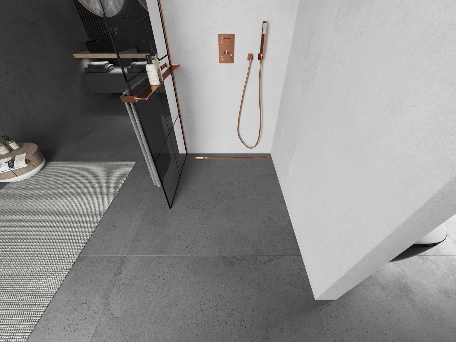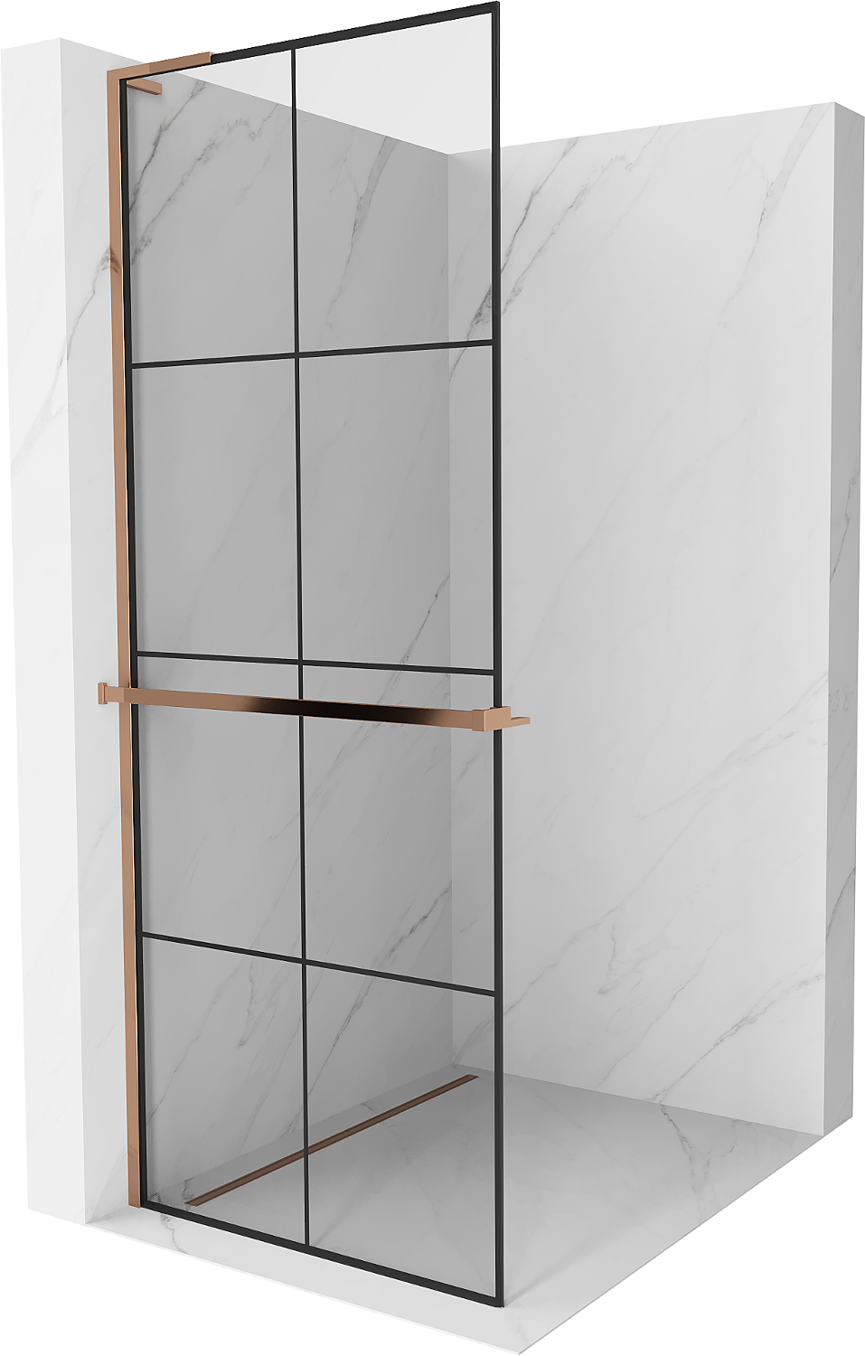 Mexen Kioto+ L sprchová stena s policou Walk-in 80 x 200 cm, čierna mriežka, ružové zlato - 800-080-123-60-77