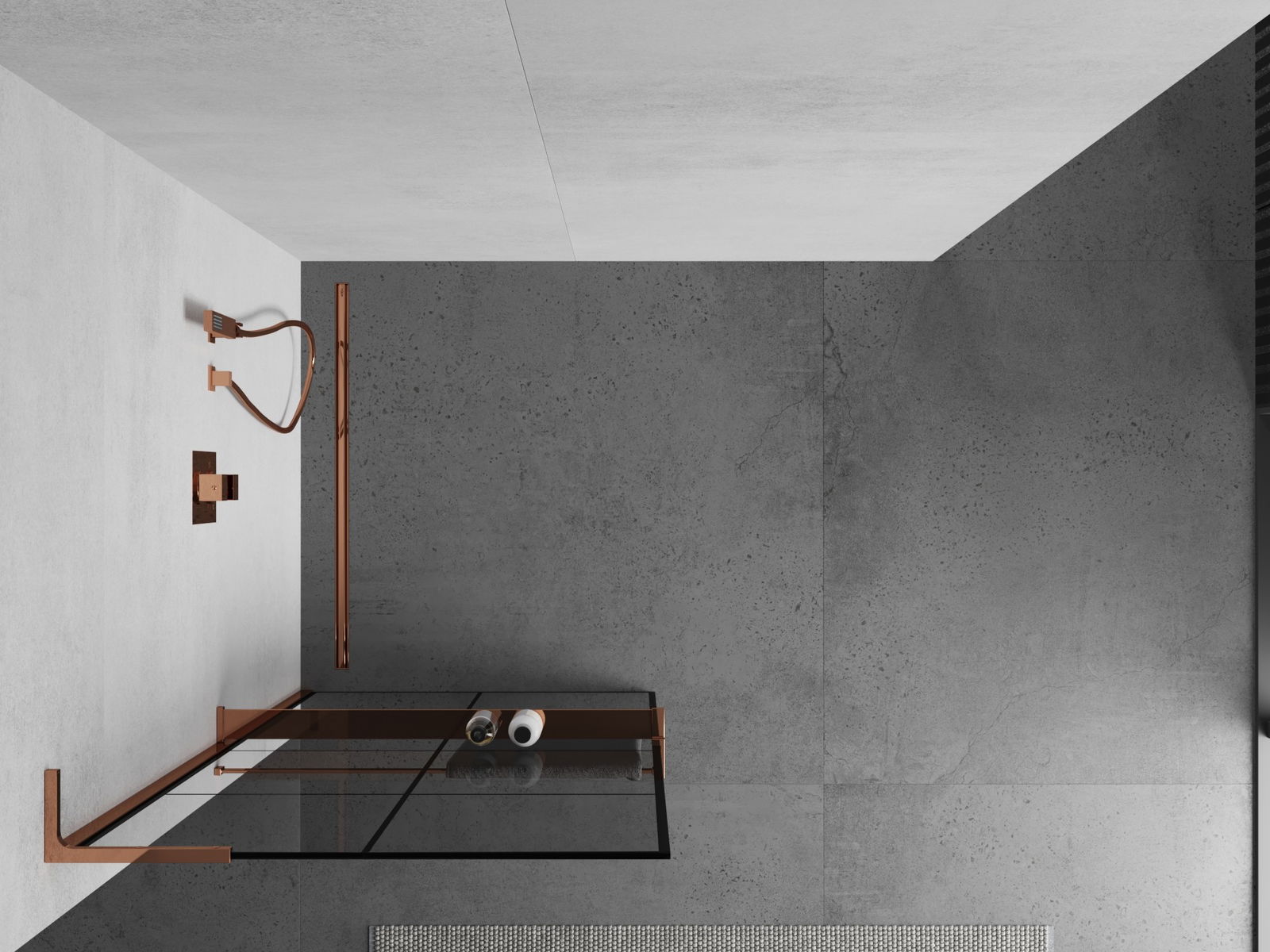 Mexen Kioto+ L sprchová stena s poličkou Walk-in 90 x 200 cm, čierna mriežka, ružové zlato - 800-090-123-60-77