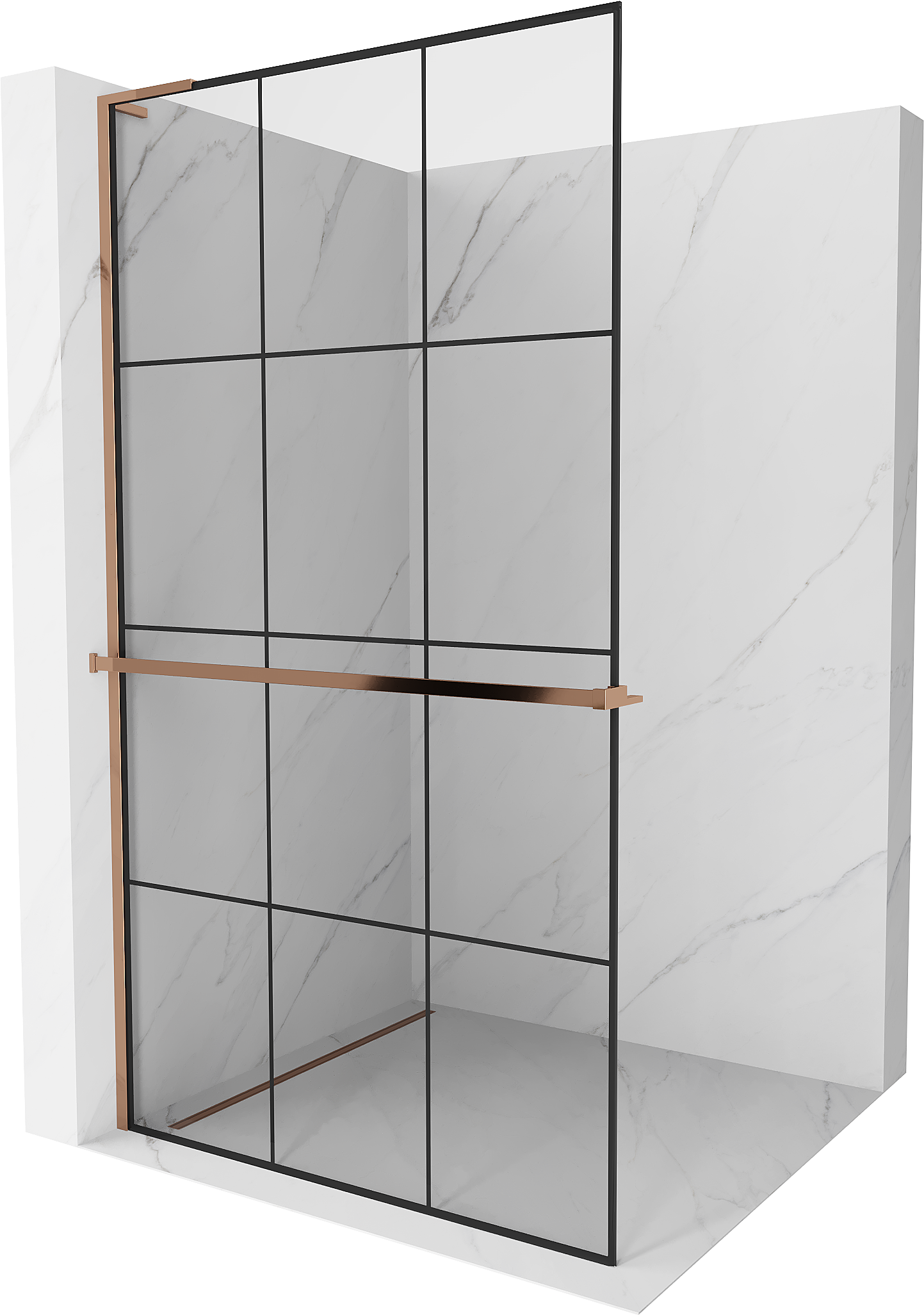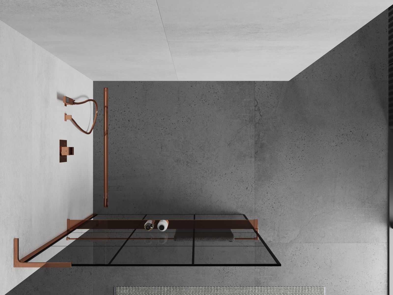 Mexen Kioto+ L sprchová stena s poličkou Walk-in 100 x 200 cm, čierna mriežka, ružové zlato - 800-100-123-60-77