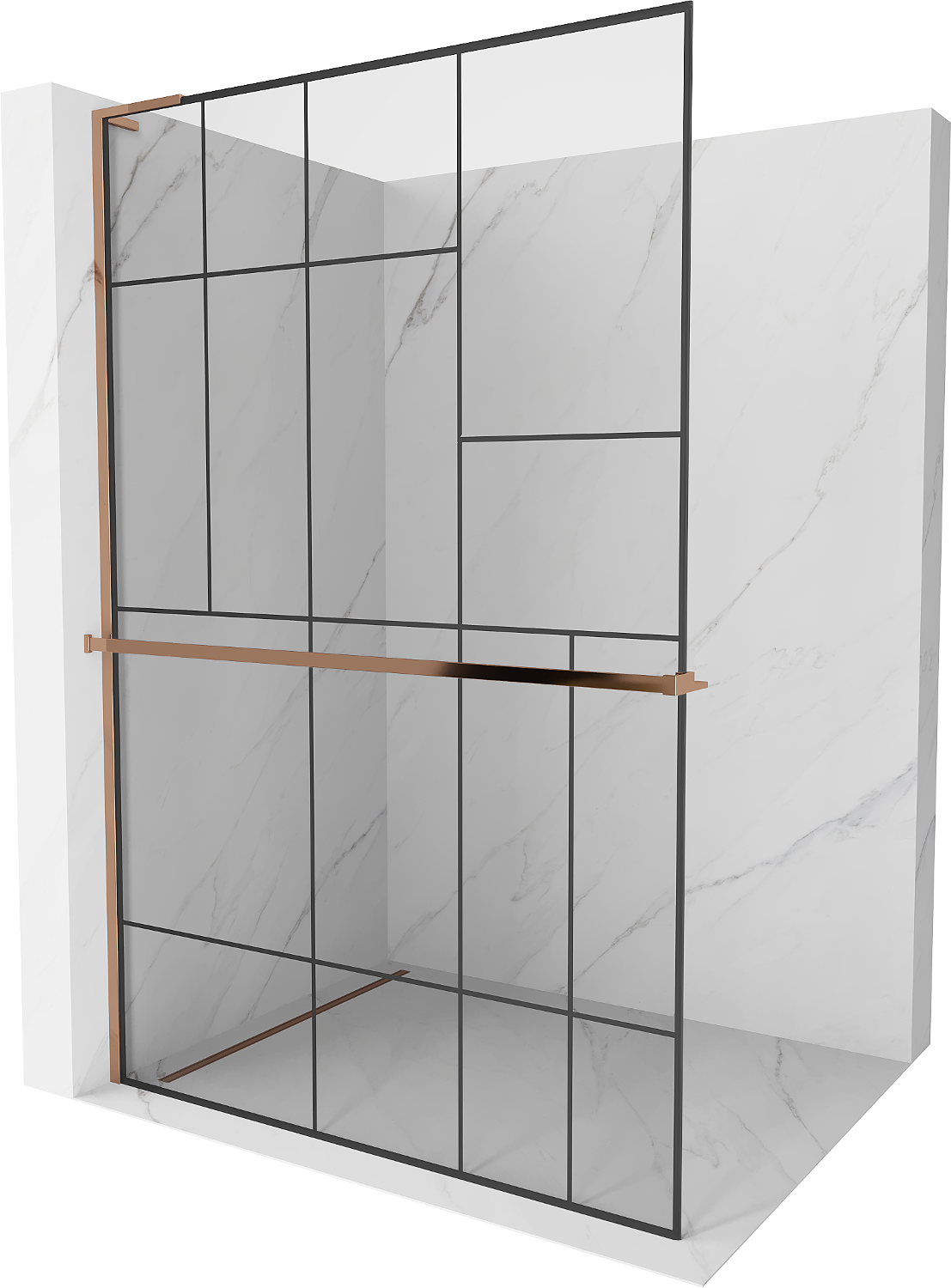 Mexen Kioto+ L sprchová stena s policou Walk-in 70 x 200 cm, čierny vzor, ružové zlato - 800-070-123-60-78