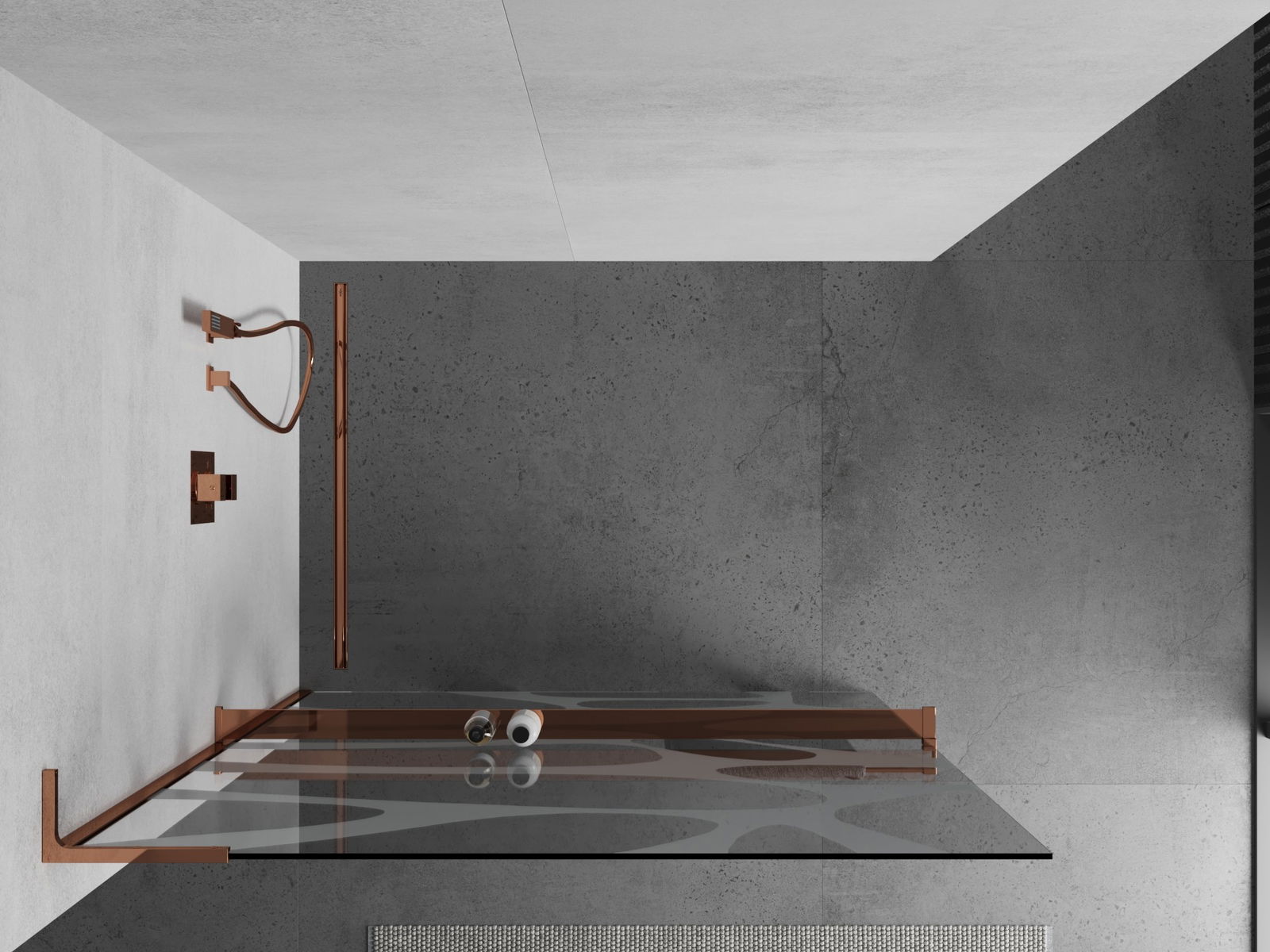 Mexen Kioto+ L sprchová stena s poličkou Walk-in 100 x 200 cm, biela vlna, ružové zlato - 800-100-123-60-97