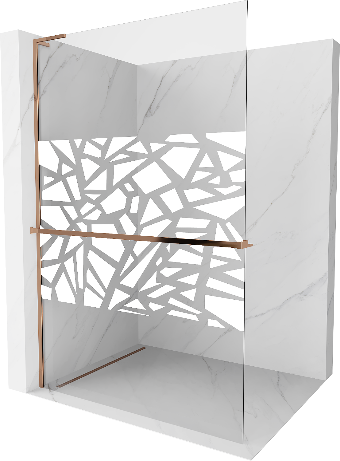 Mexen Kioto+ L sprchová stena s poličkou Walk-in 100 x 200 cm, biely vzor, ružové zlato - 800-100-123-60-85