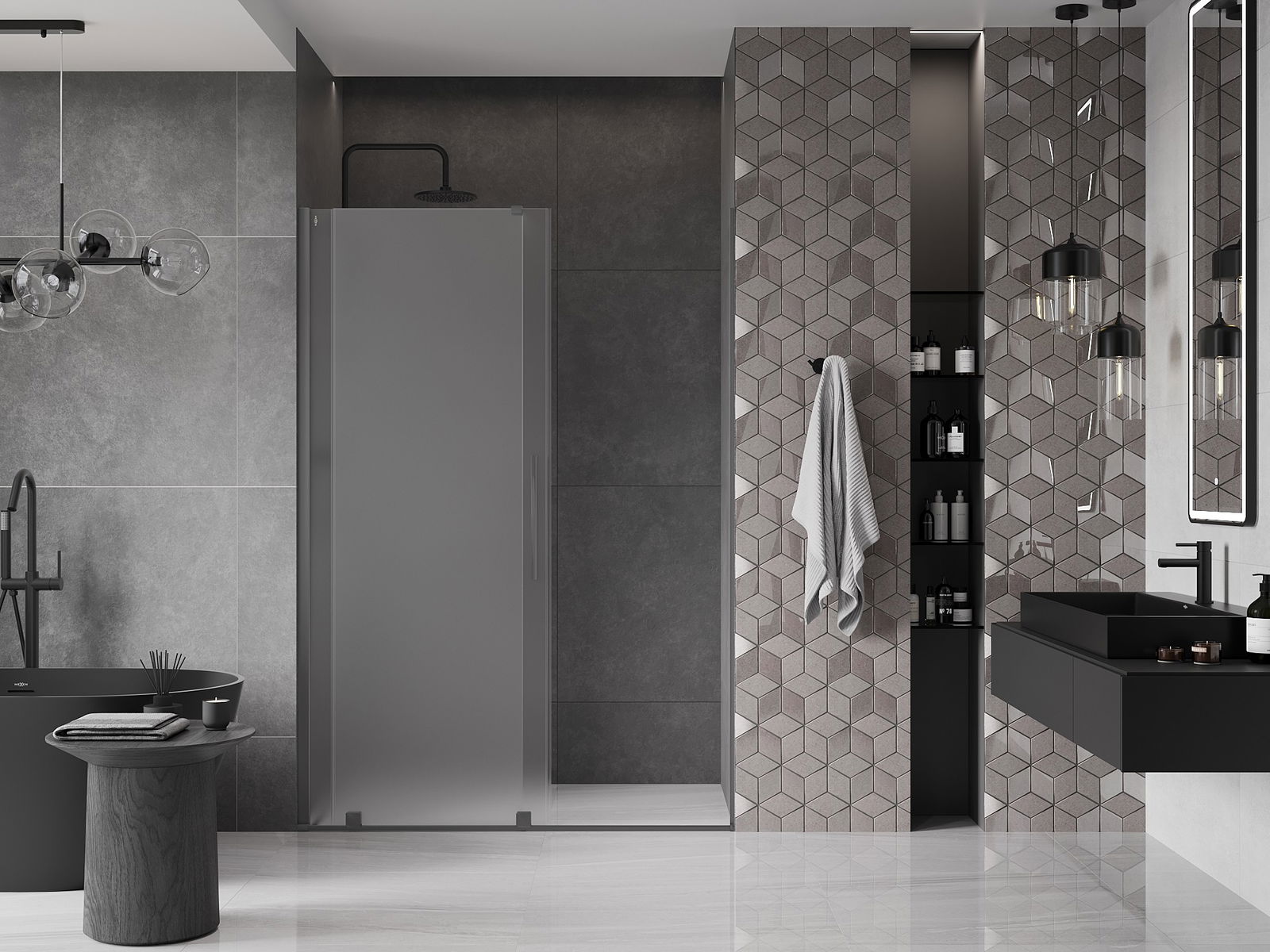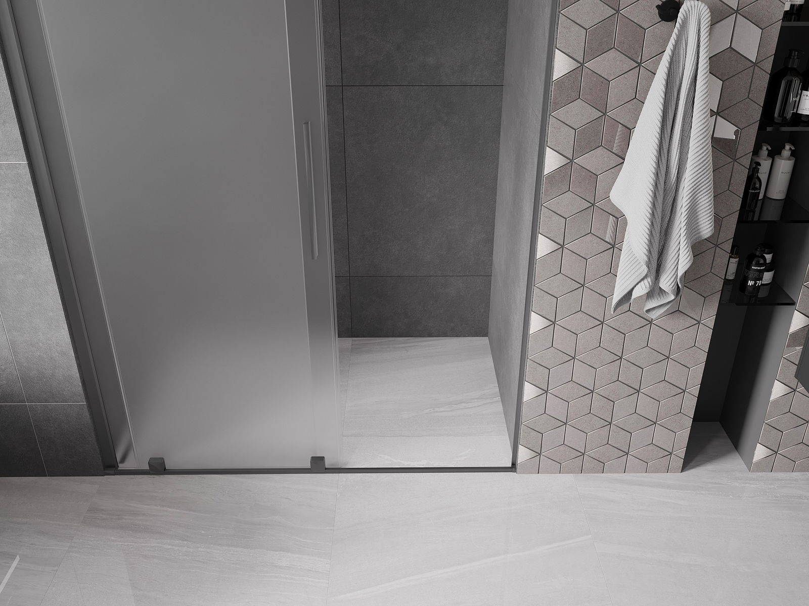 Praktický a pohodlný držiak je vyrobený z nehrdzavejúcej ocele. Módny tvar v kombinácii s povrchovou úpravou prispôsobenou farbe profilov dodáva celej konštrukcii moderný a štýlový vzhľad, podčiarkujúc estetiku každej kúpeľne.