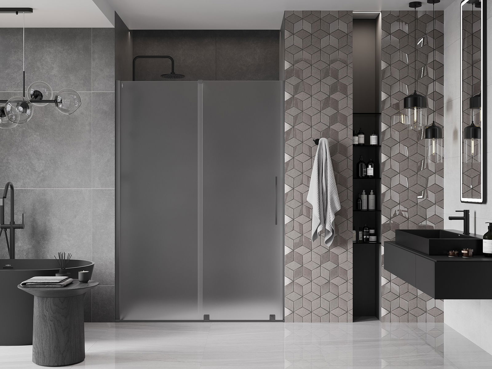 Mexen Velar posuvné sprchové dvere 160 cm, mrazené sklo, tmavý kov - 871-160-000-31-95