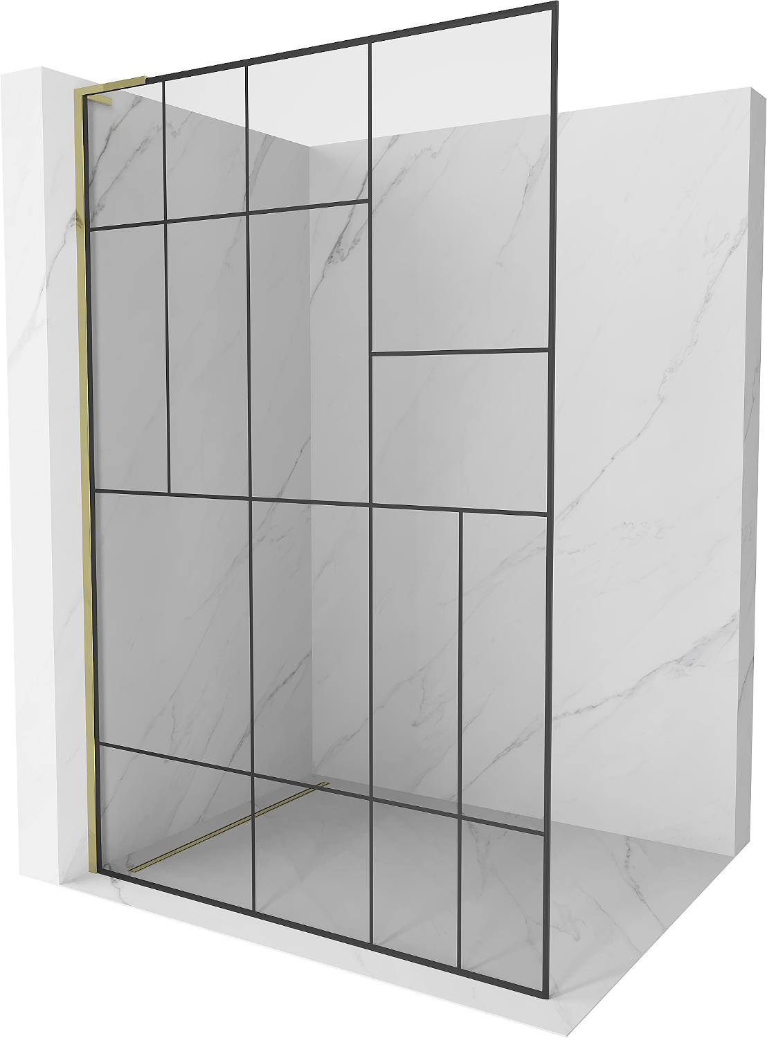 Mexen Kioto L, sprchová stena Walk-in 120 x 200 cm, čierny vzor, zlatá - 800-120-103-50-78