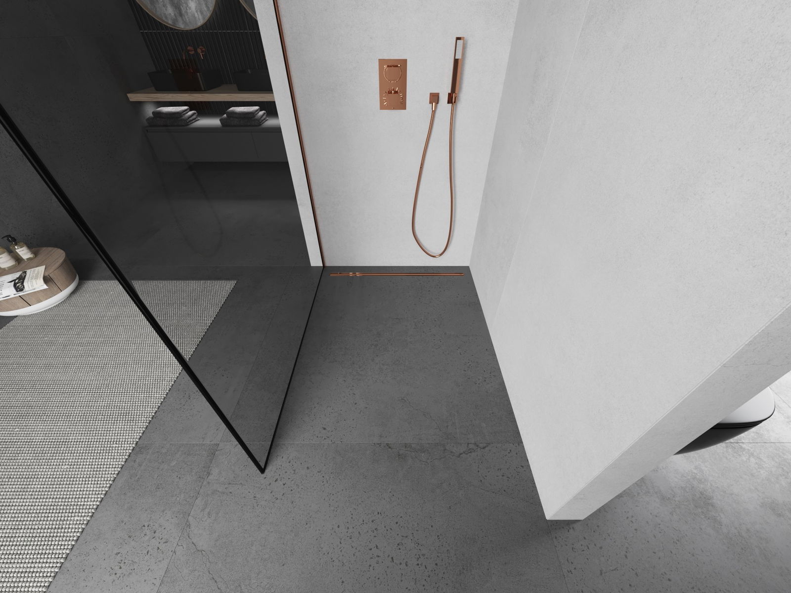 Mexen Kioto L sprchová stena Walk-in 70 x 200 cm, čierny rám, ružové zlato - 800-070-103-60-70