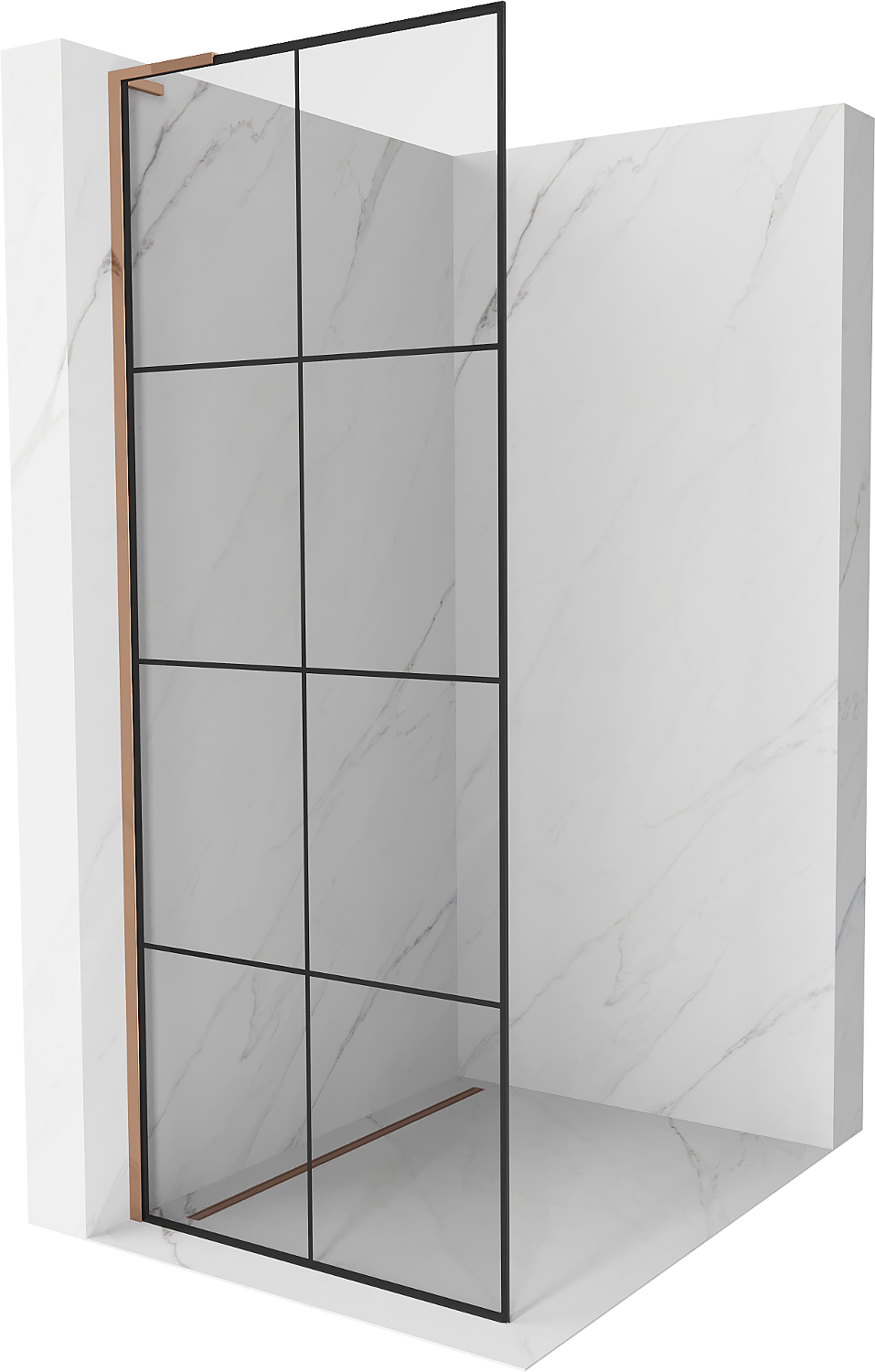 Mexen Kioto L sprchová stena Walk-in 70 x 200 cm, čierna mriežka, ružové zlato - 800-070-103-60-77