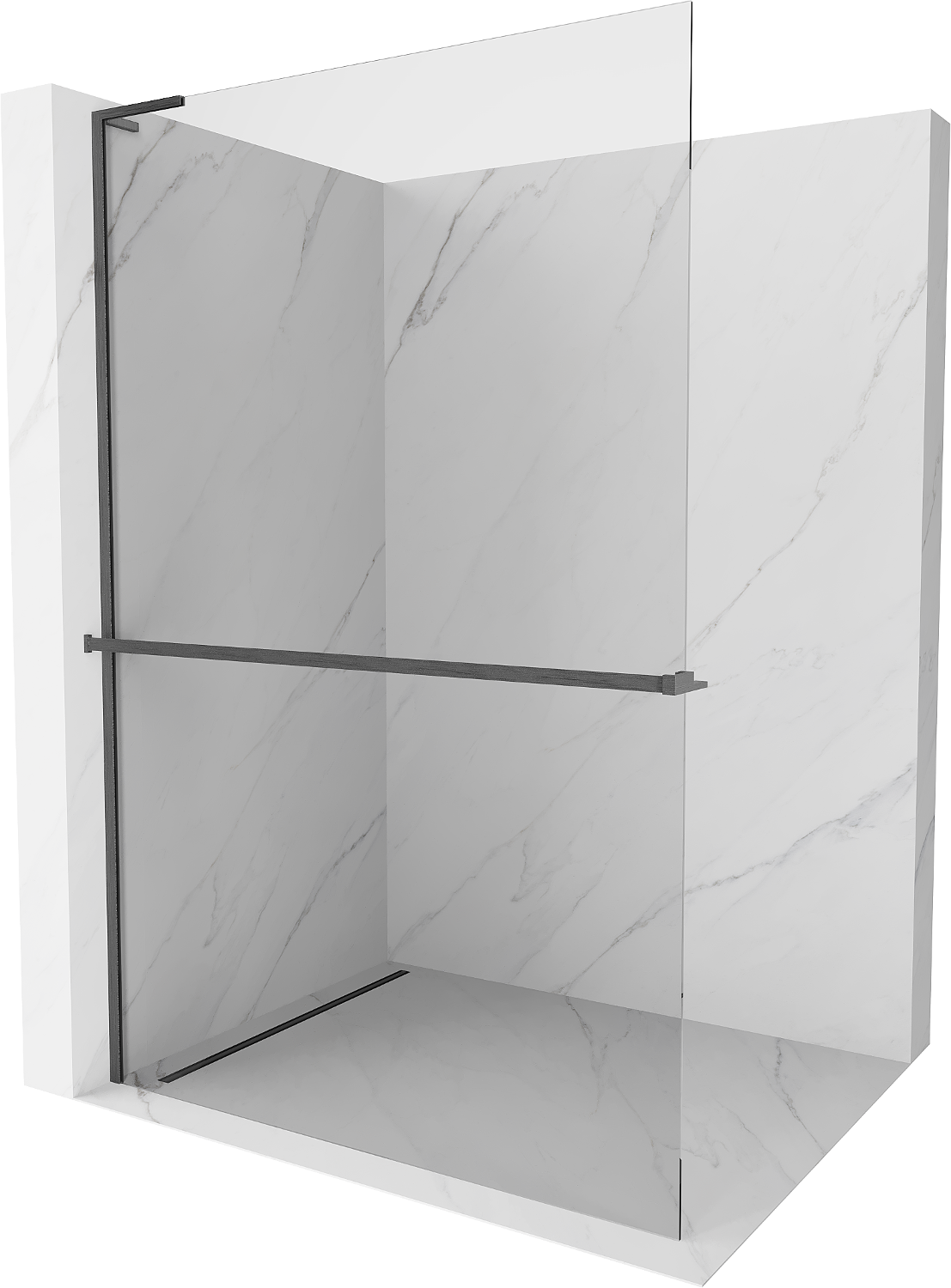 Mexen Kioto+ L sklenenná stena s poličkou Walk-in 65 x 200 cm, transparentná, gun gray brúsená - 800-065-123-66-00