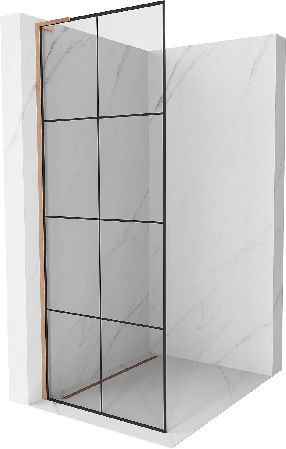 Mexen Kioto L sprchová stena Walk-in 90 x 200 cm, čierna mriežka, brúsená meď - 800-090-103-65-77