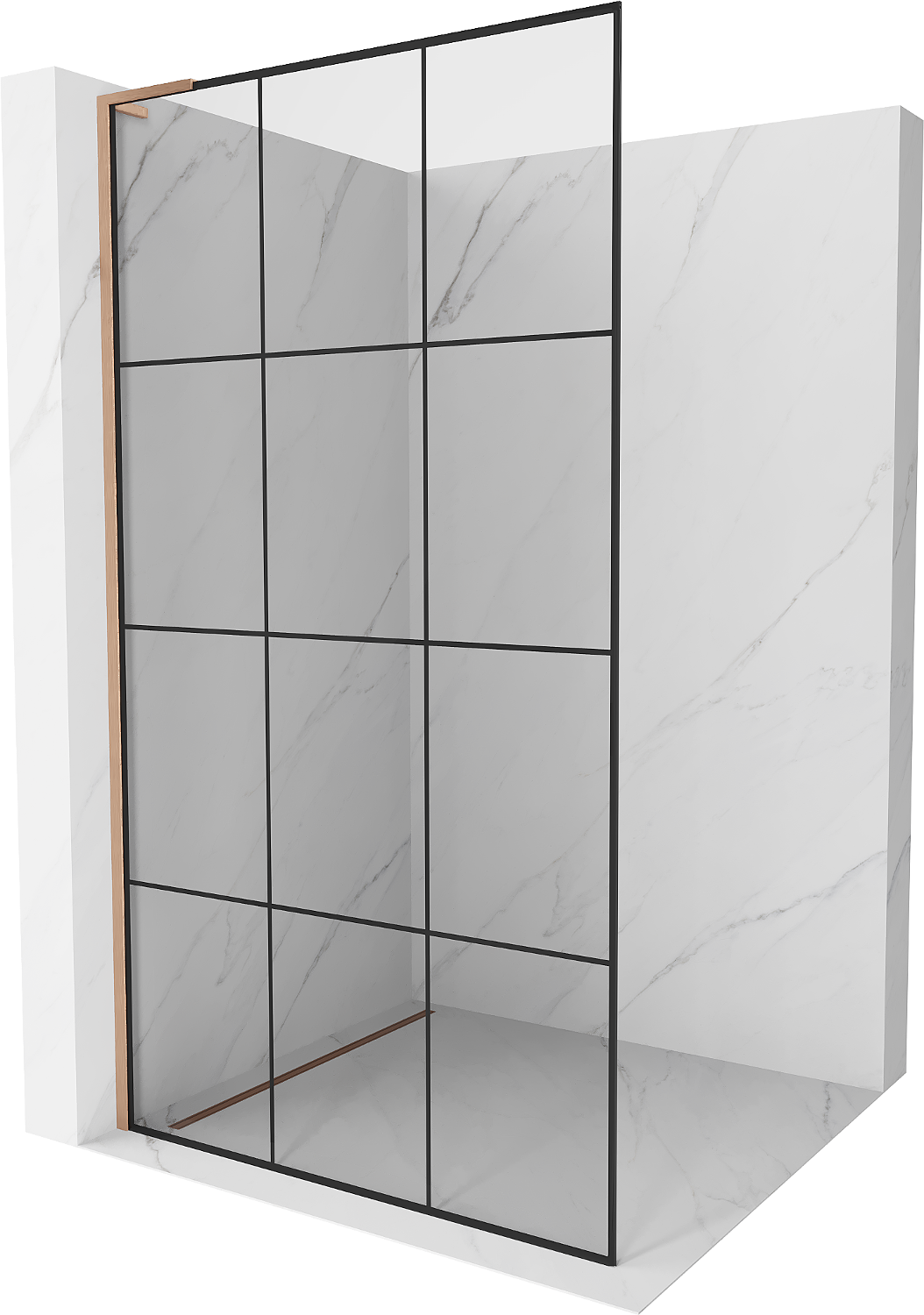Mexen Kioto L sprchová stena Walk-in 110 x 200 cm, čierna mriežka, brúsená meď - 800-110-103-65-77